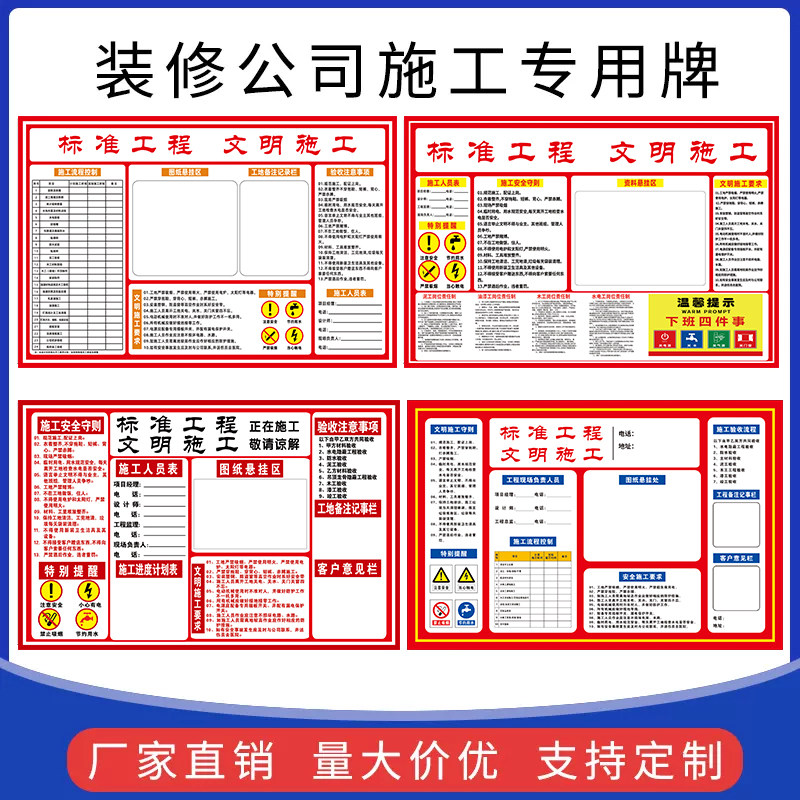 📚 装修装饰公司施工铭牌装修公司工地形象施工进度表名牌装修施工警示牌标牌定制工地展示牌装饰工程形象进度表