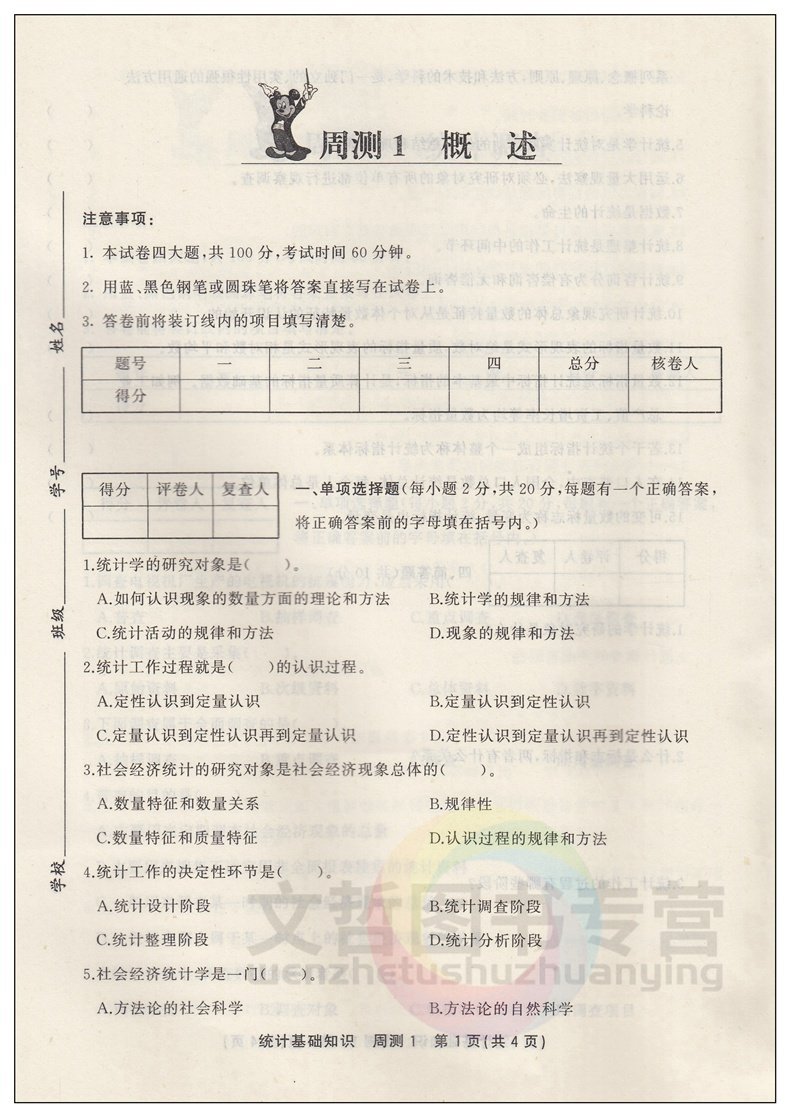 📚 中职统计基础知识周测月考单元训练习题集 中职生中专职高月考模拟试卷中等职业学校同步单元检测卷必刷卷基础知识检测