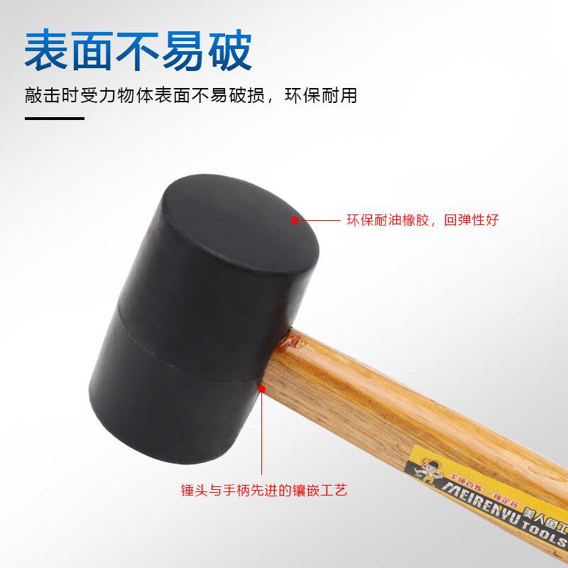 📚 瓷砖大理石木工安装锤榔头无弹力皮锤子木柄橡胶锤子橡胶贴瓷砖