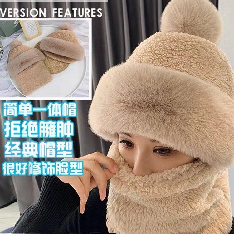 📚 帽子女士冬季新款保暖骑车防风面罩冬天防寒加厚护颈脖套围脖一体