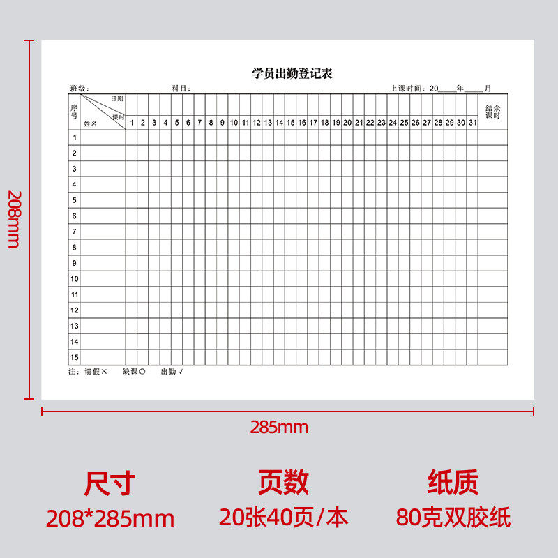 📚 学生考勤表幼儿园点名册小学班级花名册培训机构学员出勤登记表格