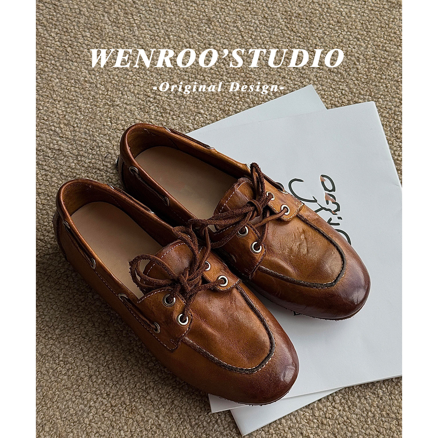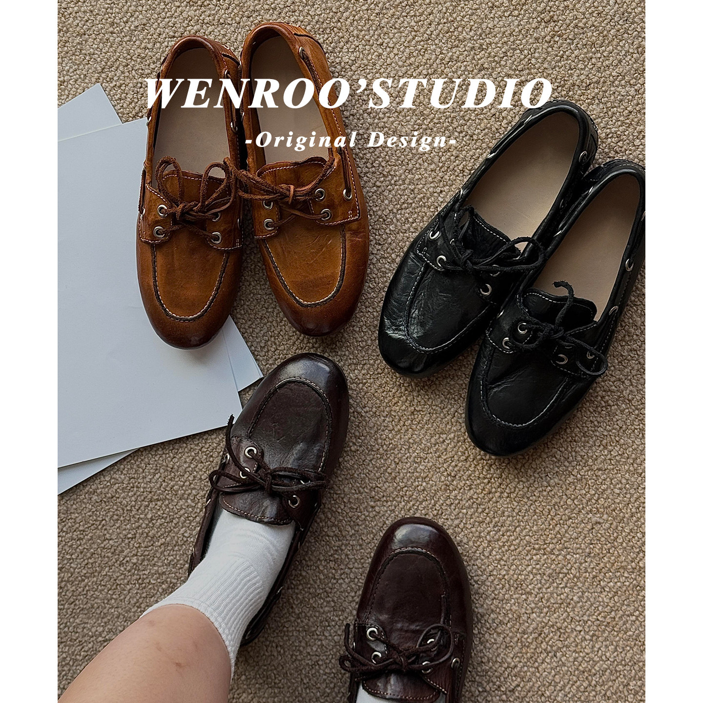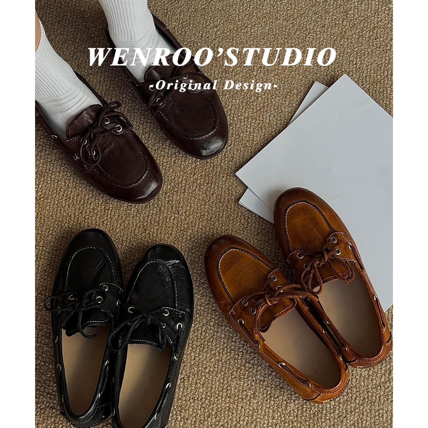 📚 水洗马皮!复古蝴蝶结平底乐福小皮鞋女2026新款擦色玛丽珍单鞋