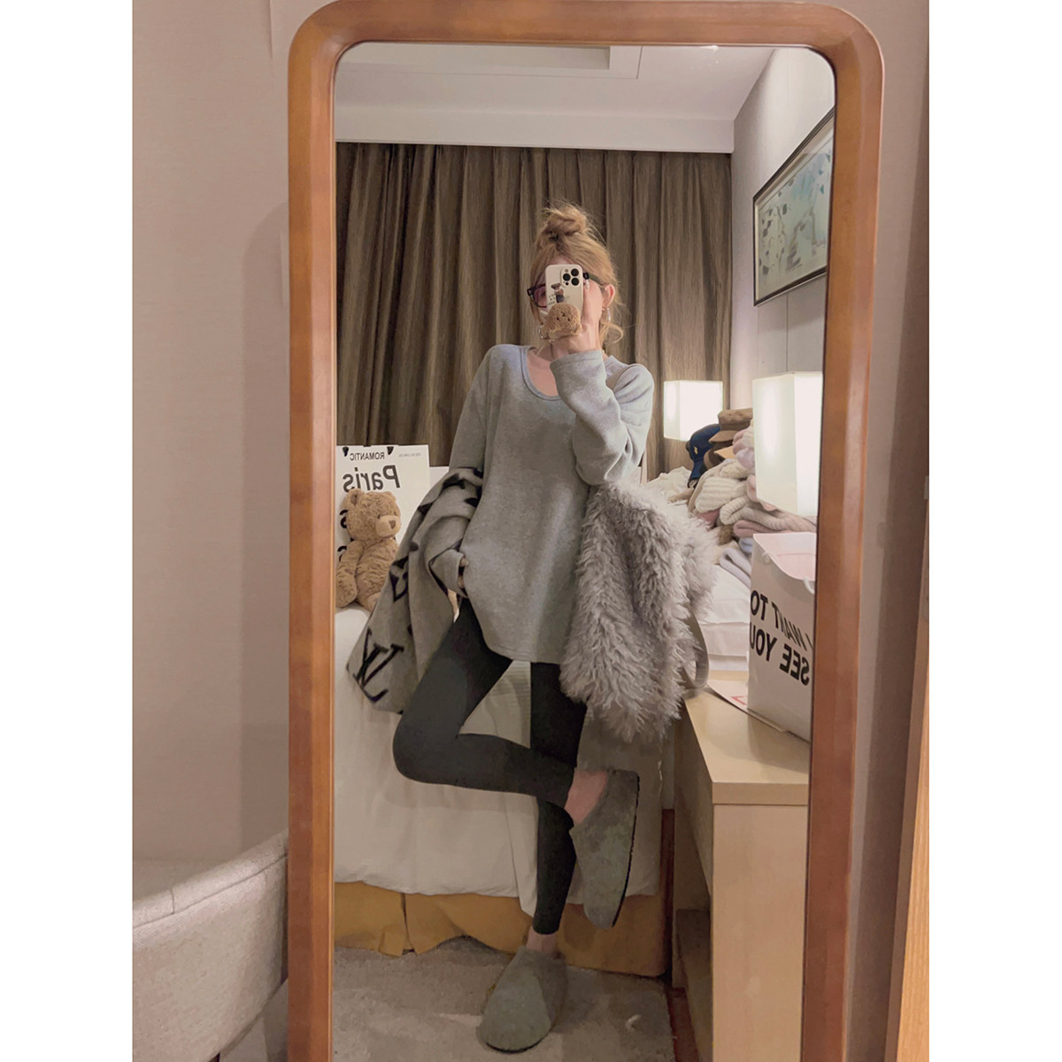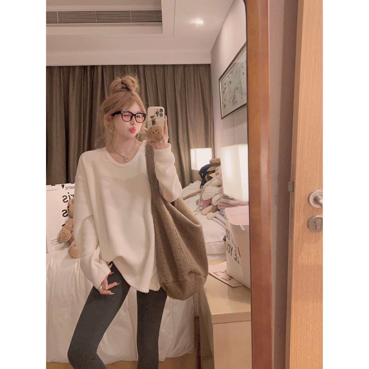 📚 Yukiss 米色u领加绒内搭T恤女冬小个子韩系宽松显瘦侧开叉打底衫
