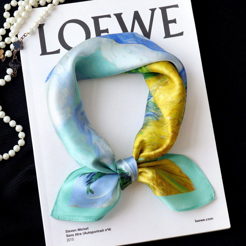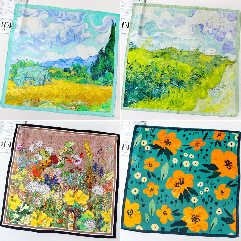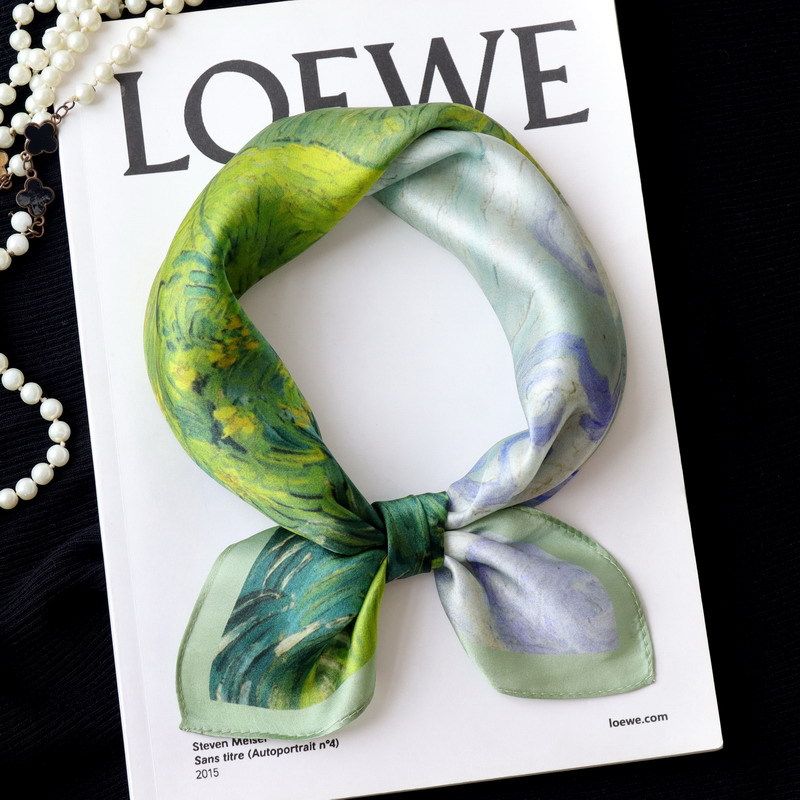 📚 26春夏真丝53小方巾scarf油画风素缎丝巾桑蚕丝围巾领巾百搭丝巾