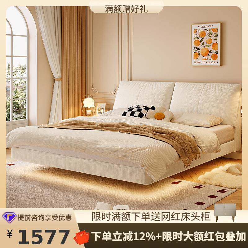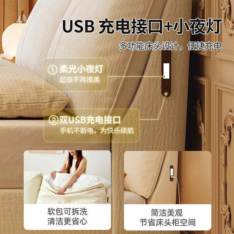 📚 桐语8特悬奶油风1尔米主卧大床双人可拆浮洗雪74404尼猫爪布软包