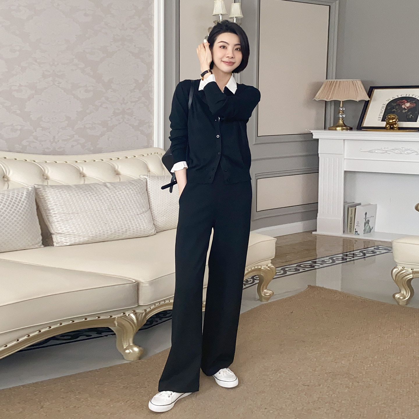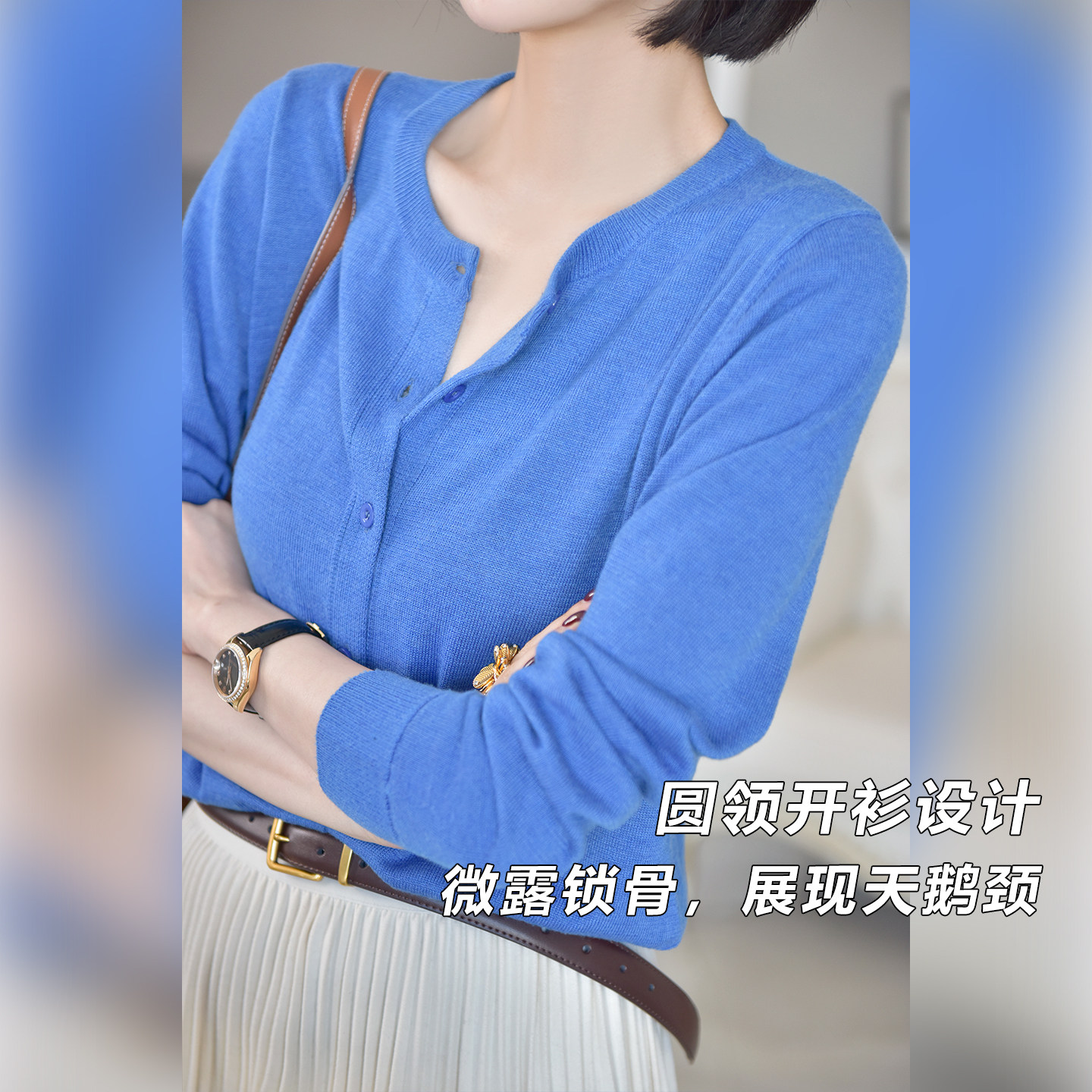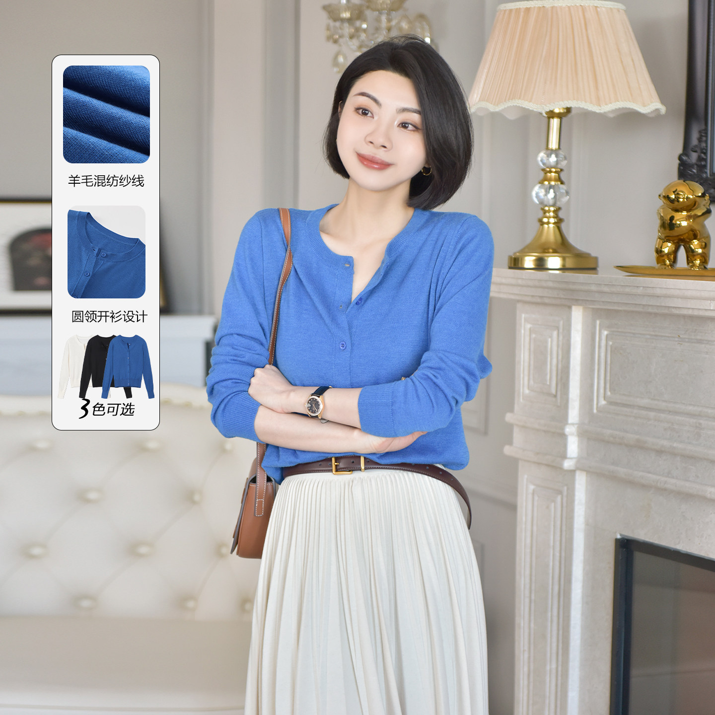 📚 大洪洪【柔软时光】春季款羊毛混纺通勤针织衫女百搭亲肤圆领开衫