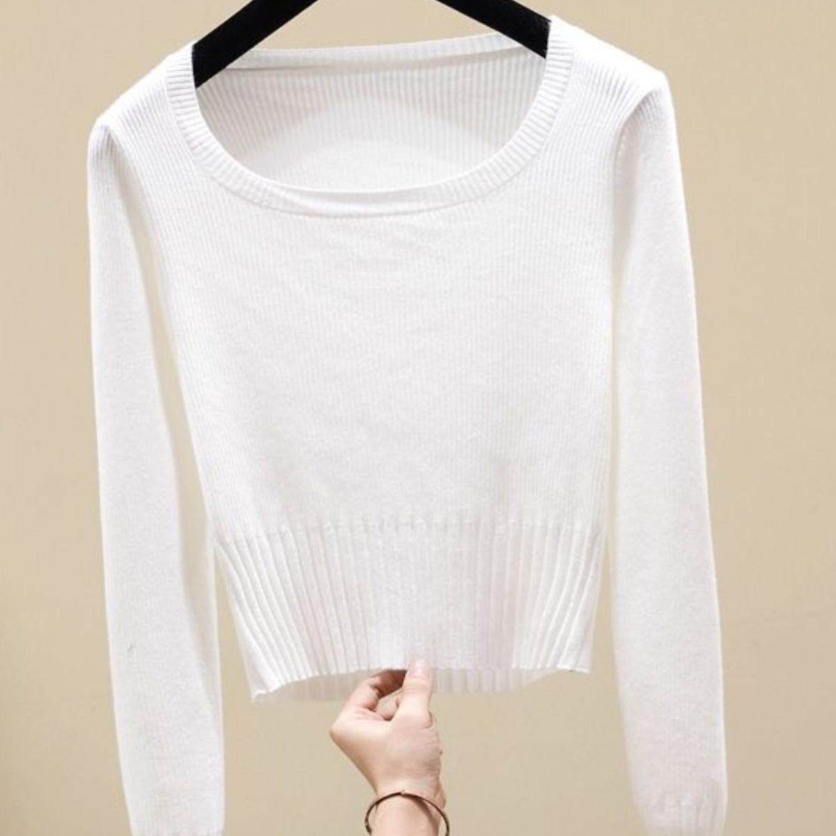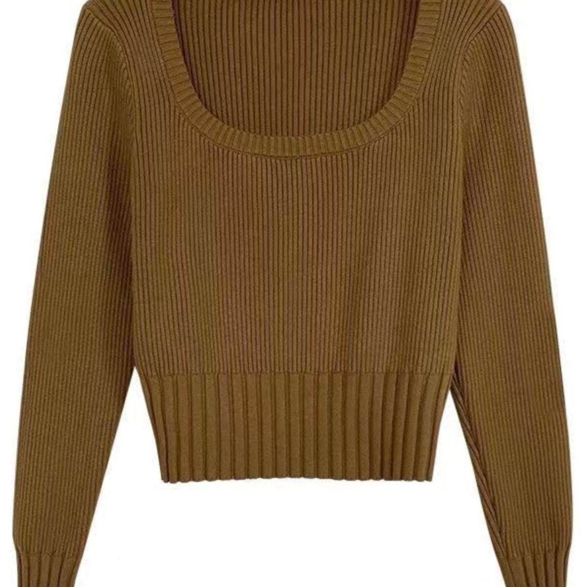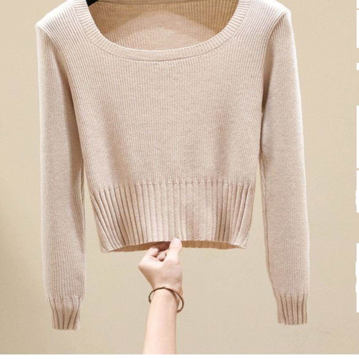 📚 小众短款方领针织衫女2024秋冬新款纯色修身打底毛衣内搭外穿上衣