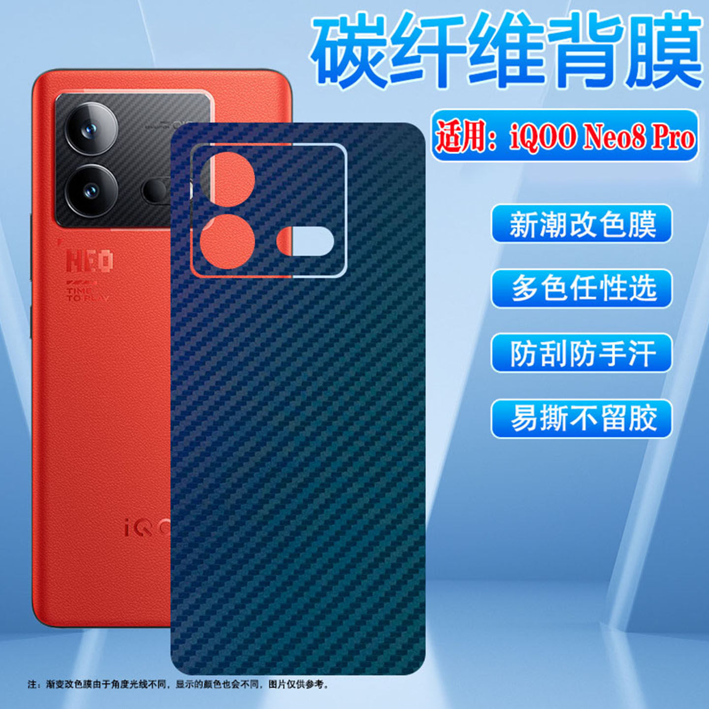 📚 适用iqooneo9手机后膜爱酷neo10pro+磨砂8改色NEO7SE彩膜Neo11碳纤维背贴V2301A后盖壳彩纸6防刮贴膜855竞速