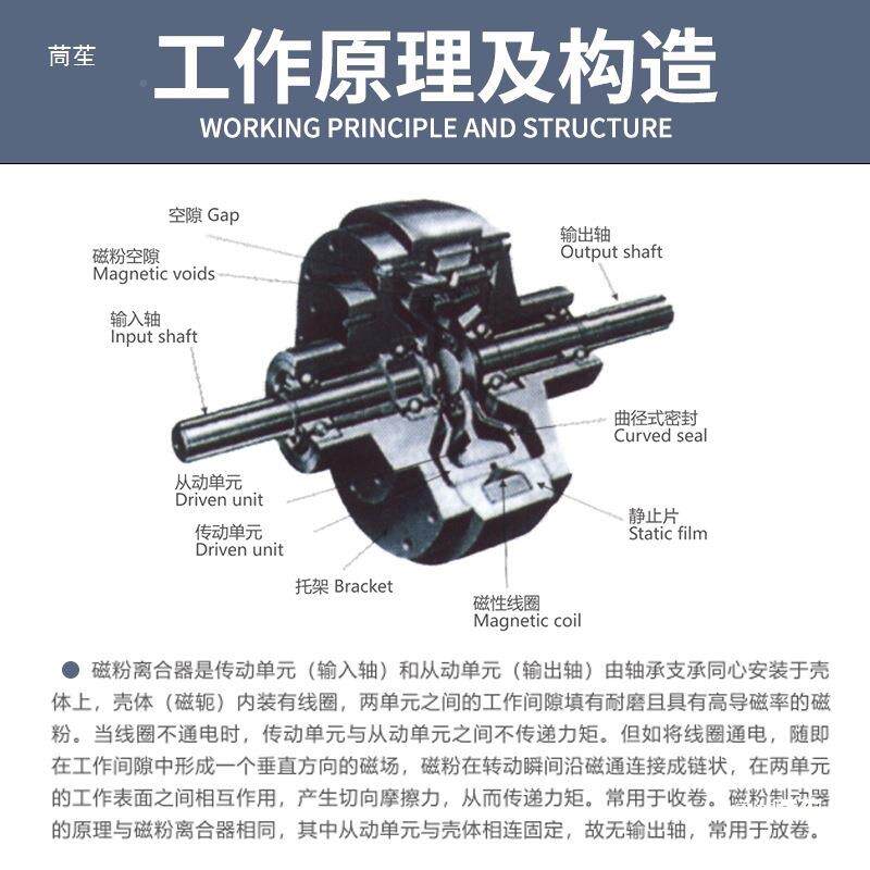 📚 带底座磁带底磁粉制控动器离合器24V单轴双座轴中空F张力制器刹车