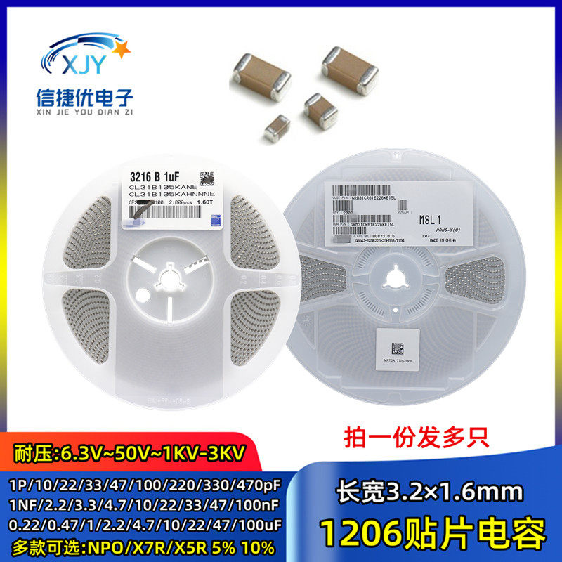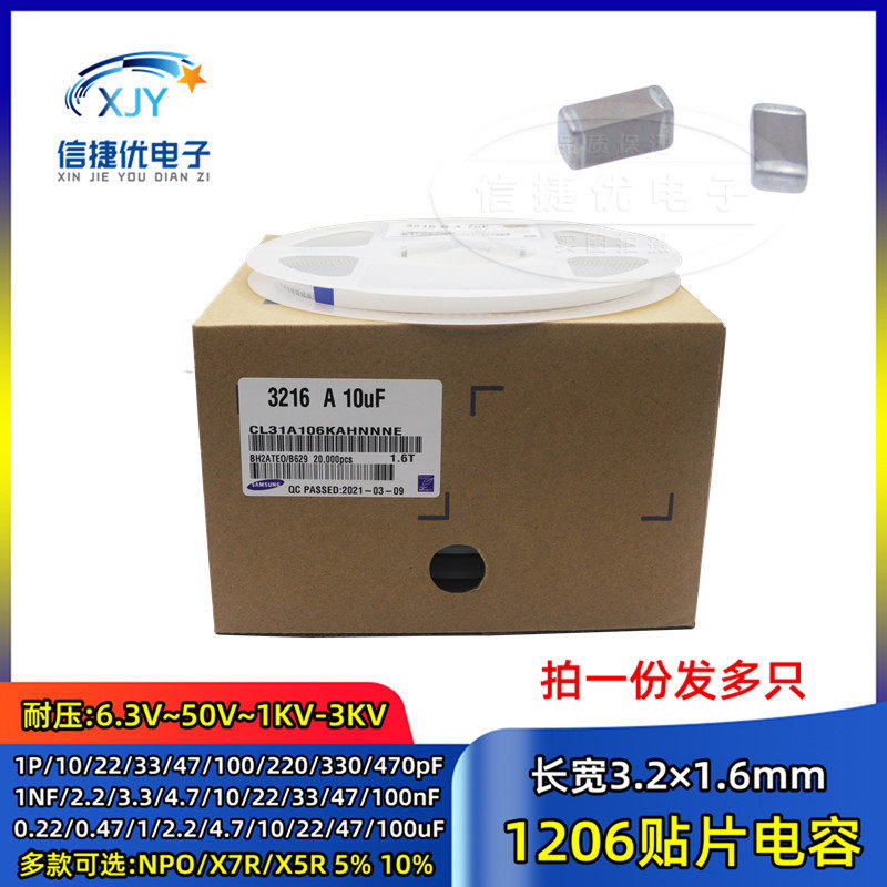 📚 1206贴片电容 1/4.7/10/22/33/47/100nF/uF/PF 104K/105/106/226M