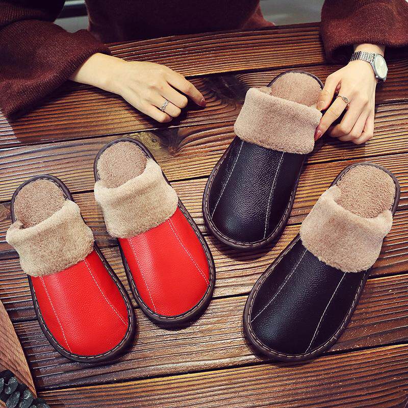 📚 秋冬季皮质棉拖鞋冬天男女室内地板居家用防滑保暖月子鞋皮质拖鞋