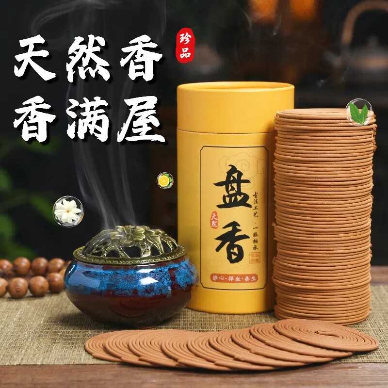 📚 檀香香薰盘香沉香艾草桂花香家用卧室内房间持久熏香厕所去味除臭