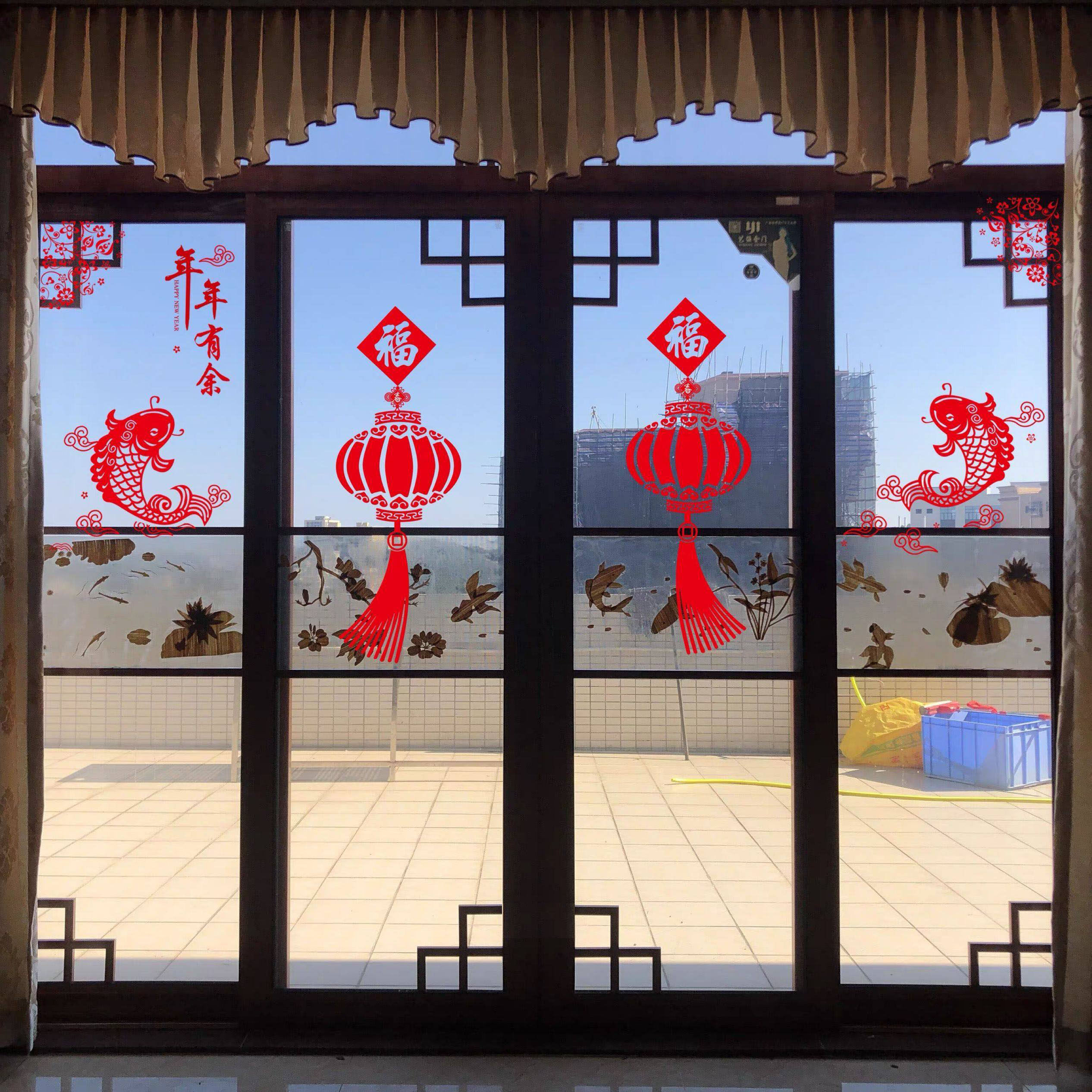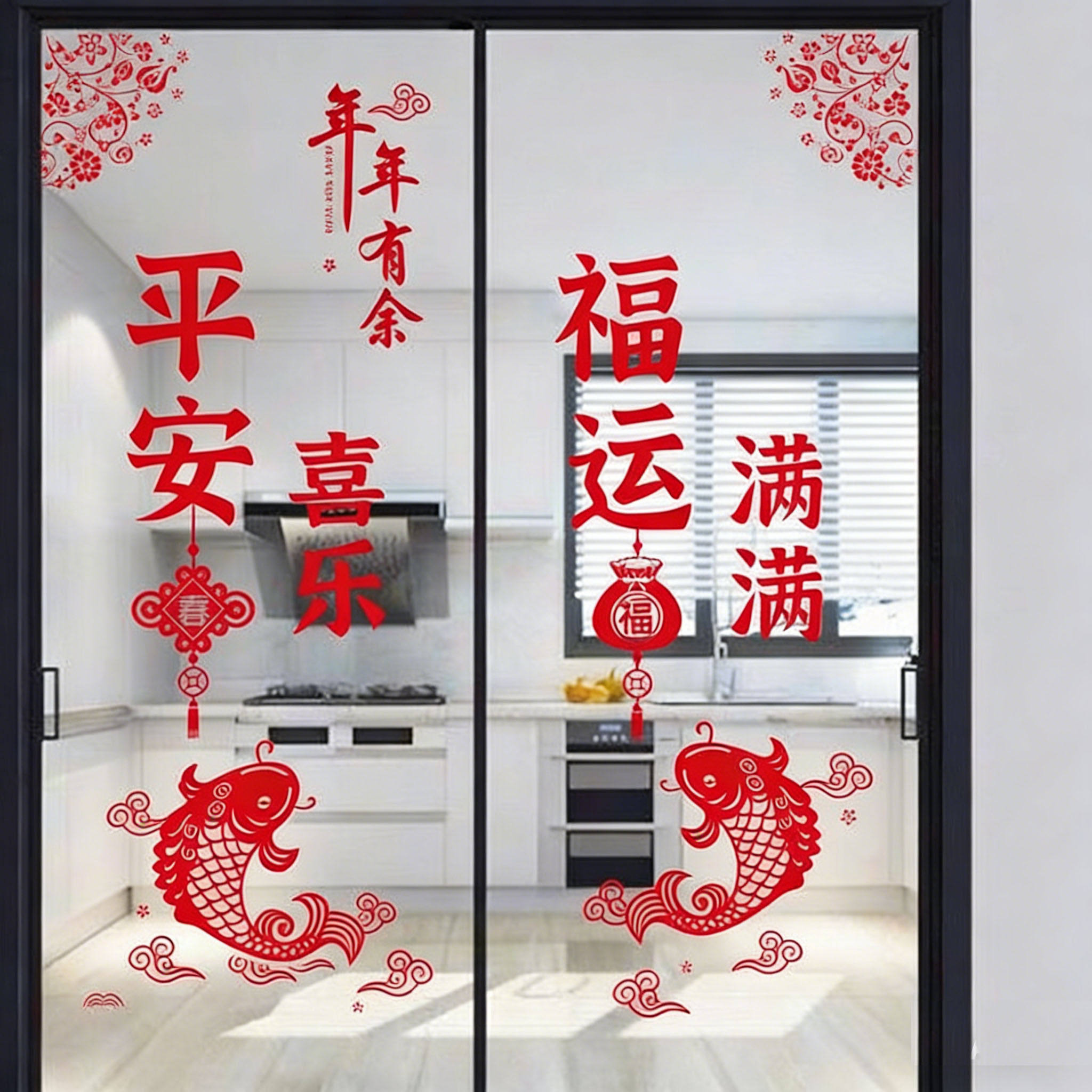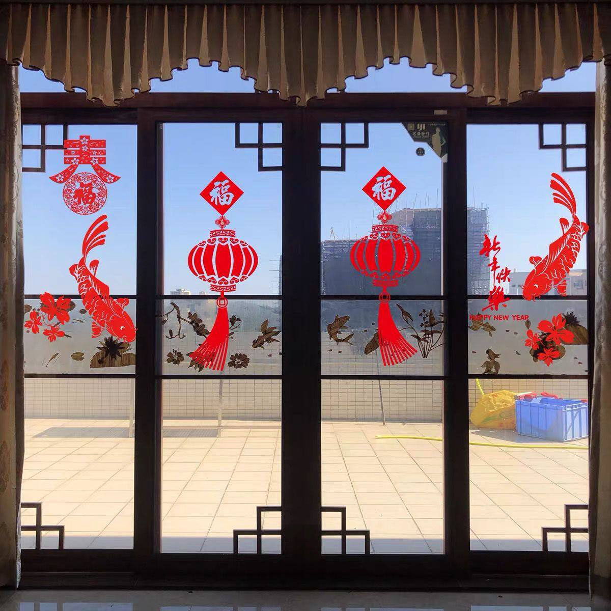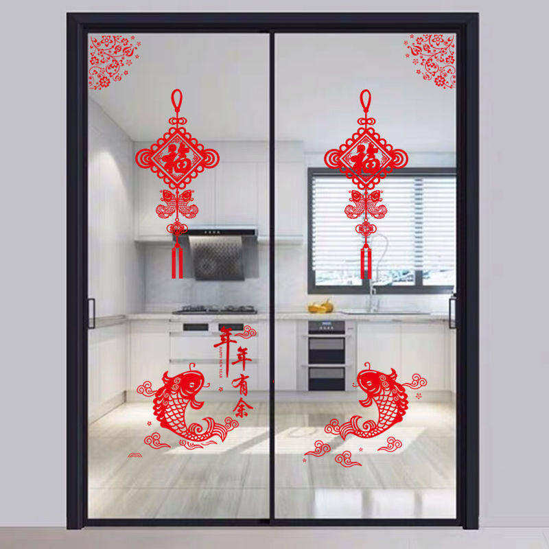 📚 厨房三门小推拉门装饰福袋贴纸防撞玻璃新年喜庆过年窗花静电贴画