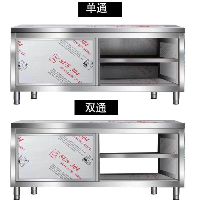 📚 整体焊接不锈钢工作台厨房操作台台面收纳柜桌子拉门案板商用烘焙