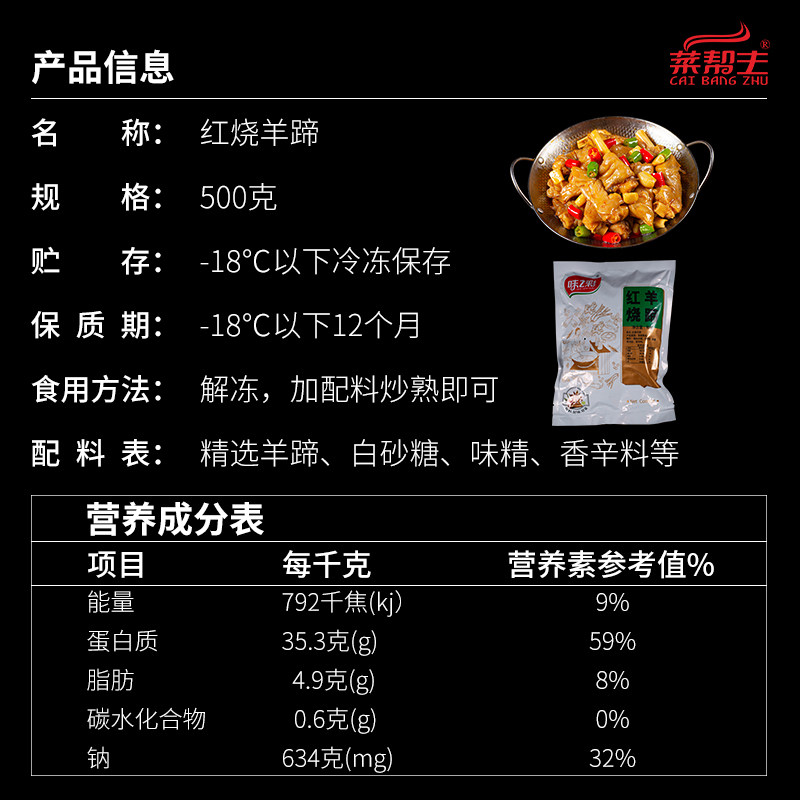 📚 红烧羊蹄500g特色冷冻私房菜半成品餐饮食材密料调理腌制卤羊小蹄