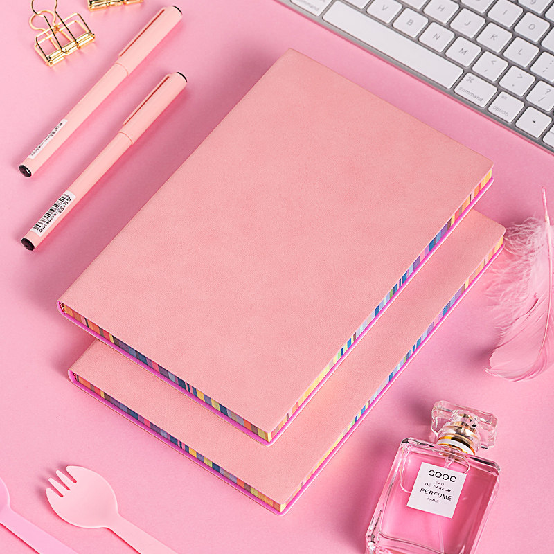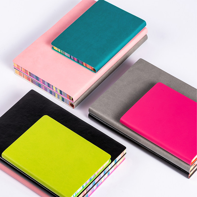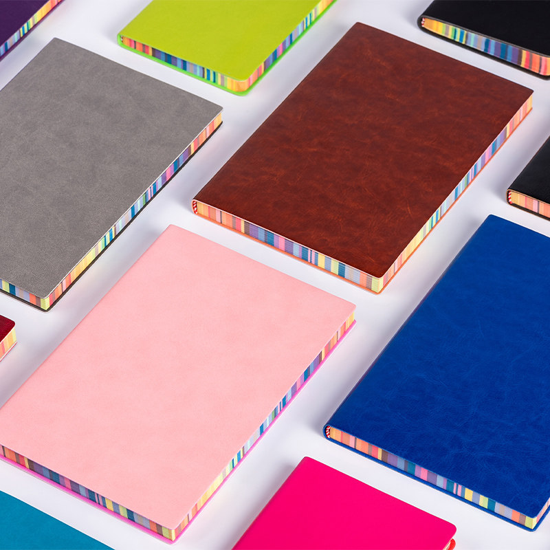 📚 A5商务笔记本简约办公文具记事本小清晰学生日记本加厚皮面本创意彩边胶装本随身小本子手账记事本可定制LOGO