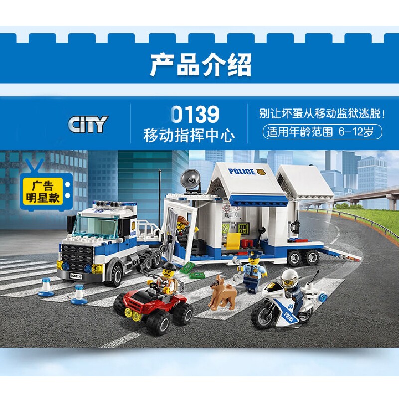 📚 乐高积木移动指挥车60139城市警察高速追捕儿童益智拼装玩具礼物
