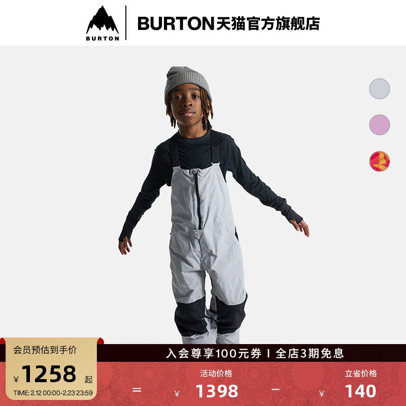 📚 BURTON伯顿官方儿童SKYLAR背带裤舒适防泼水滑雪单板运动裤171501