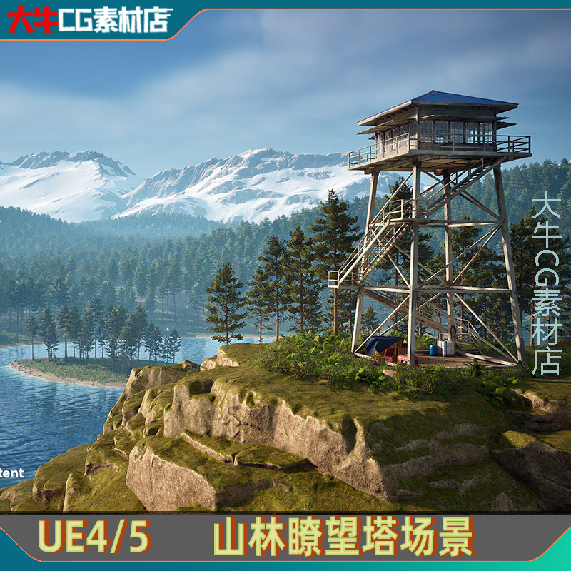 💥炫酷!UE4虚幻5下的松树森林大山雪山湖泊瞭望塔哨塔场景,券后价仅需0.6!💎