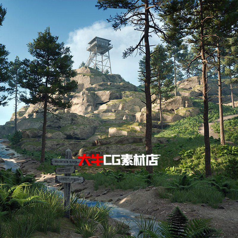 #虚幻5 #UE4 #松树森林 #大山雪山 #湖泊瞭望塔 #哨塔场景 #券后价低至0.6