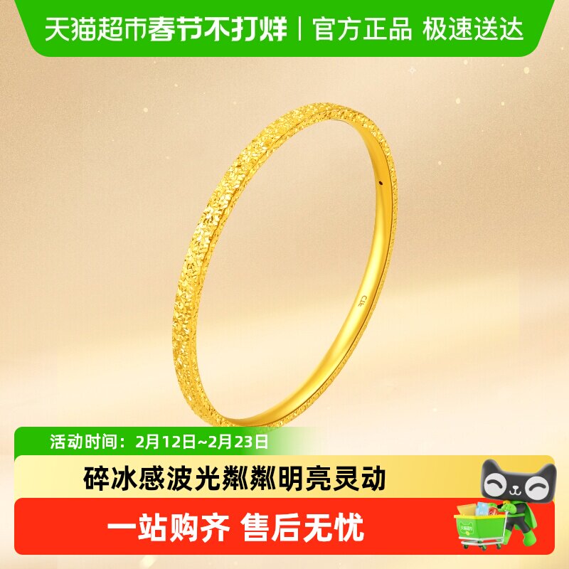 📚 新款周大福爆闪碎碎冰碎金金足金黄金手镯计价女EOF1217