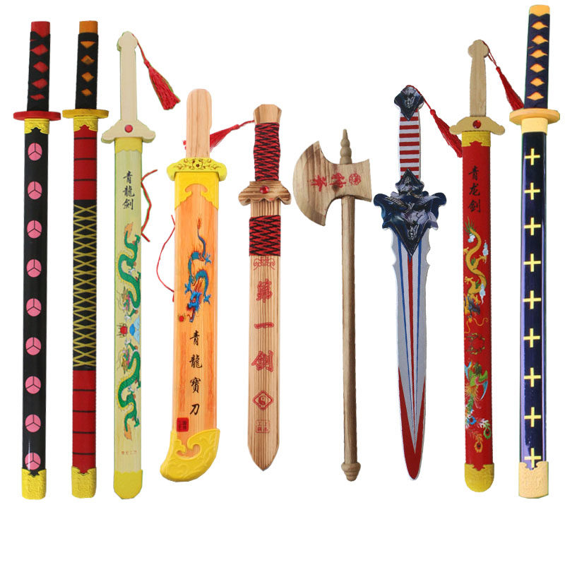 📚 儿童玩具刀剑青龙剑带剑鞘竹木刀剑传统宝剑道具木质刀剑尚方宝剑