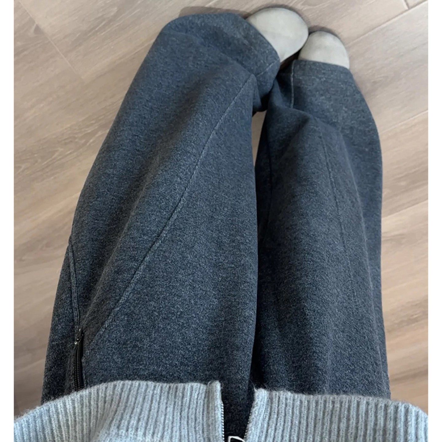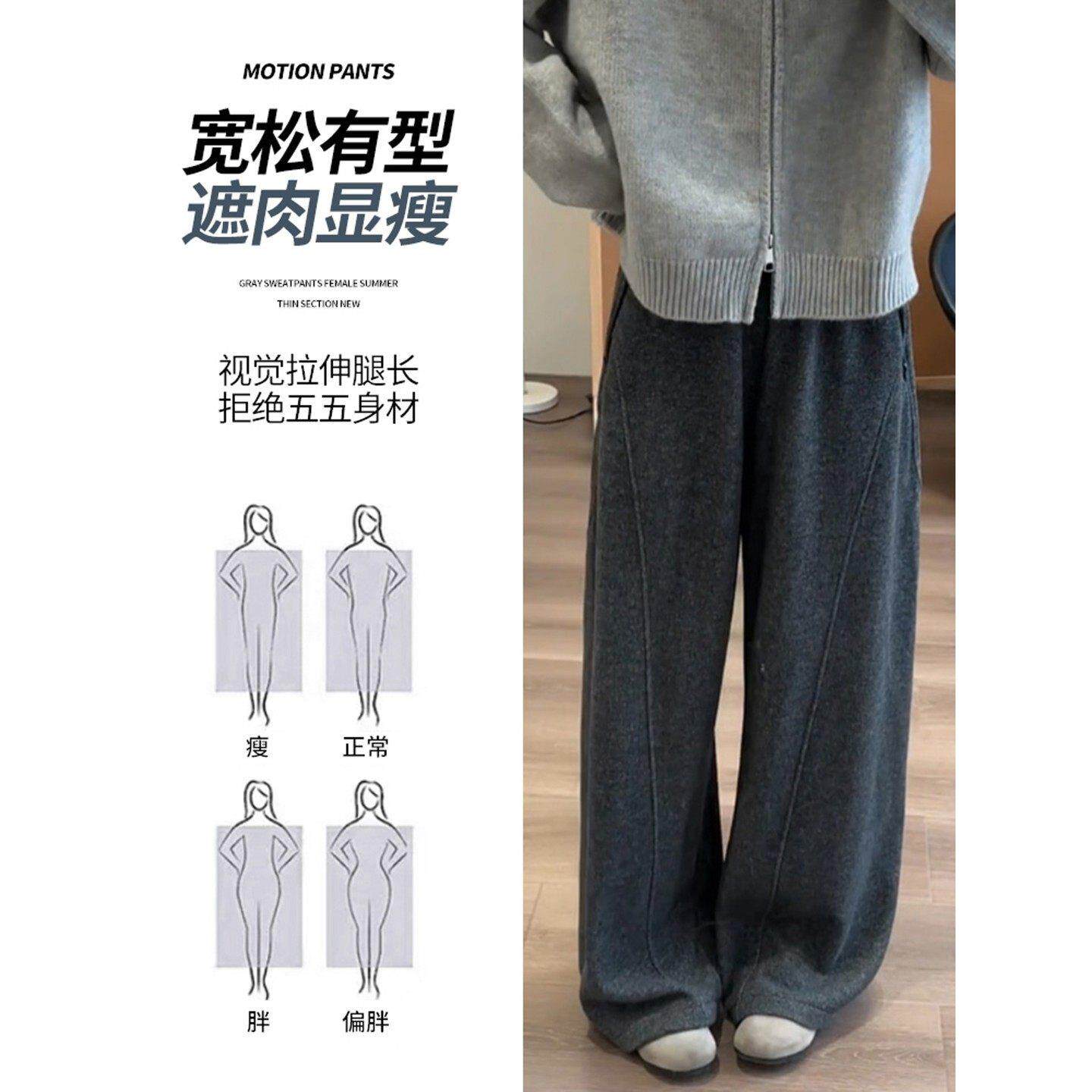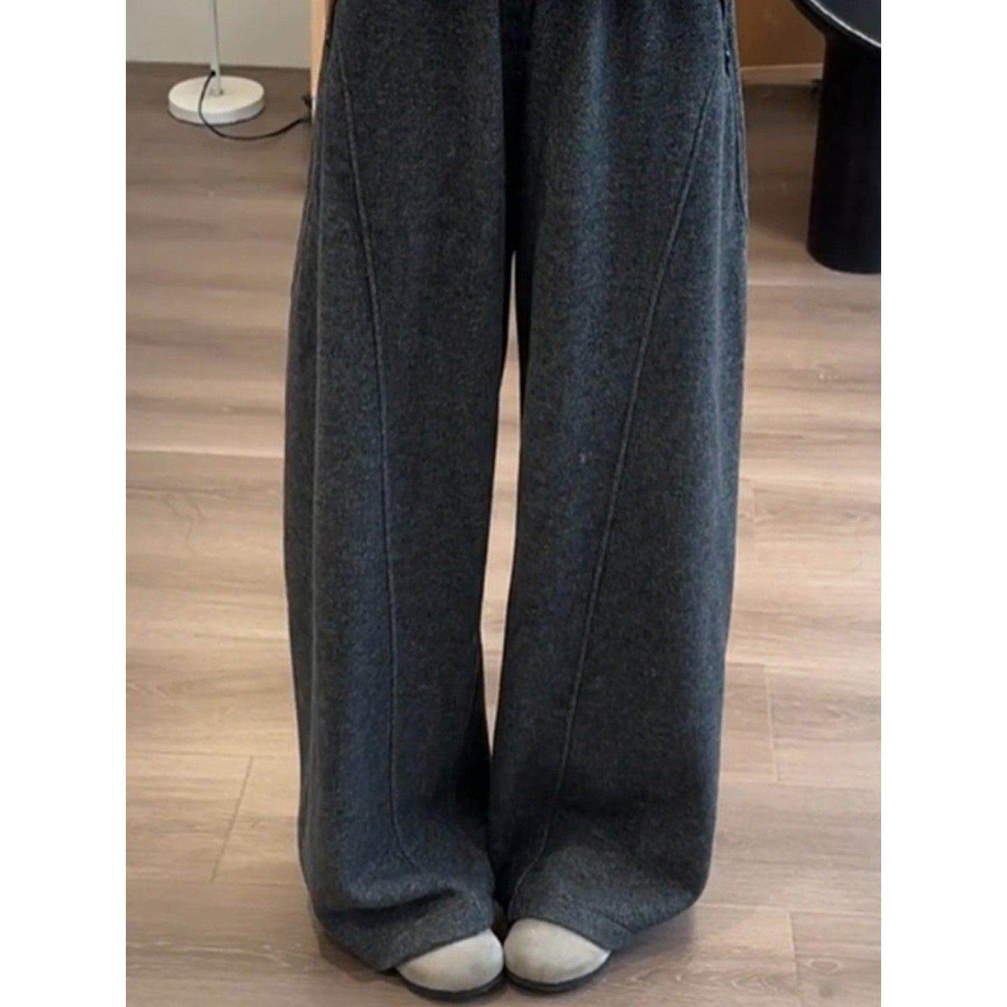 📚 深灰色毛呢弯刀裤女秋冬新款休闲阔腿显瘦高腰加绒加厚梨形报恩裤