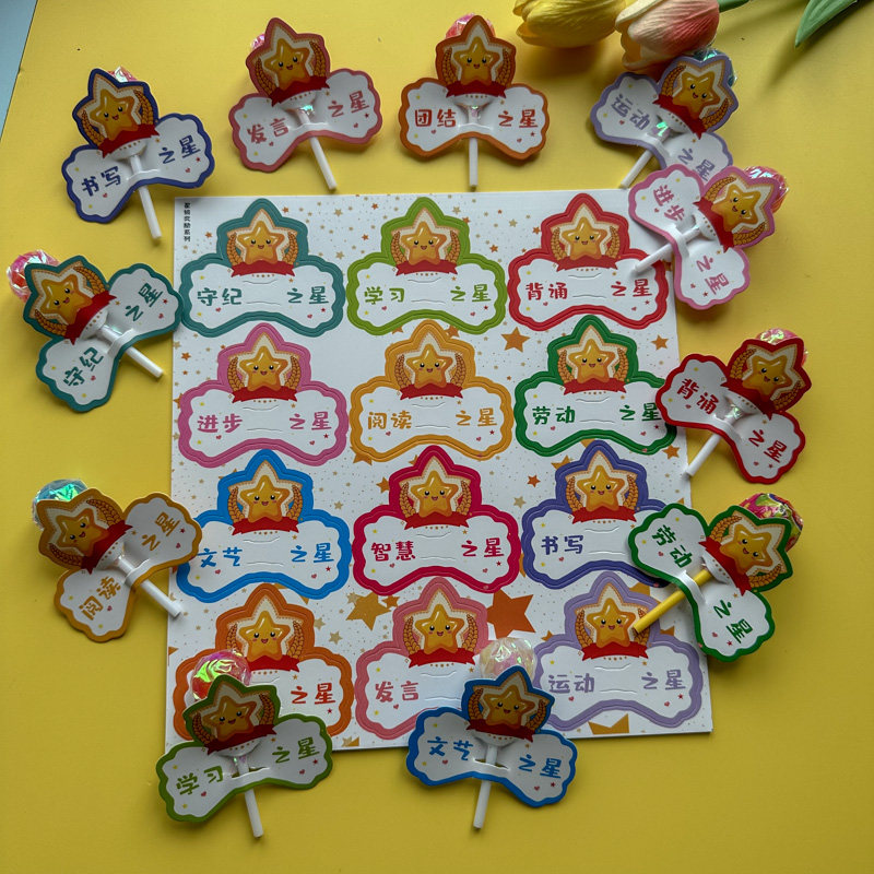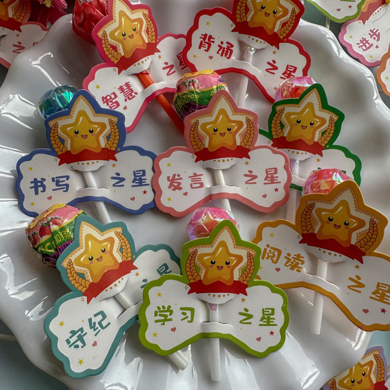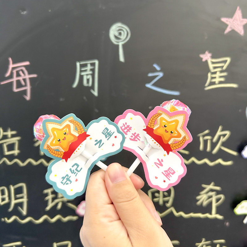 📚 一二年级每周之星棒棒糖奖励装饰纸卡儿童糖果插卡班级黑板布置老师激励阅读进步学生贺卡幼儿园星星表扬卡片