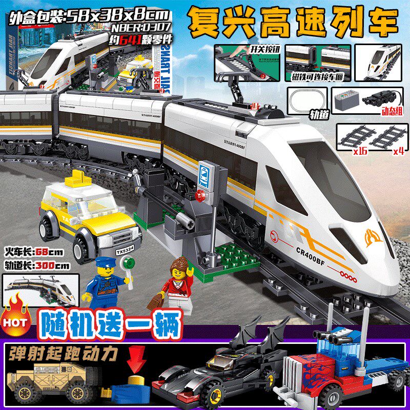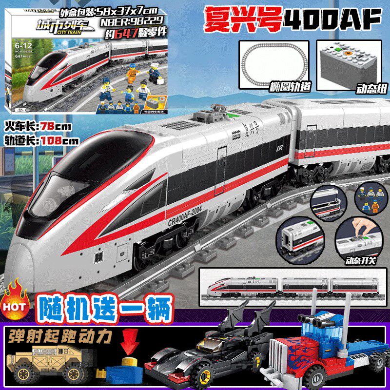 📚 复兴号电动火车可以绕弯轨道高铁站积木叠叠乐遥控列车儿童玩具男