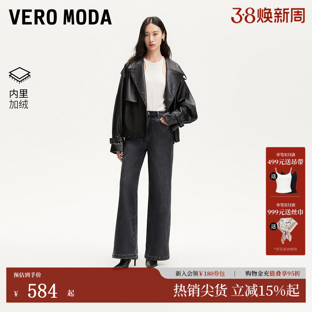 📚 Vero Moda牛仔裤2026春季新款含棉加绒高腰复古阔腿裤326132042