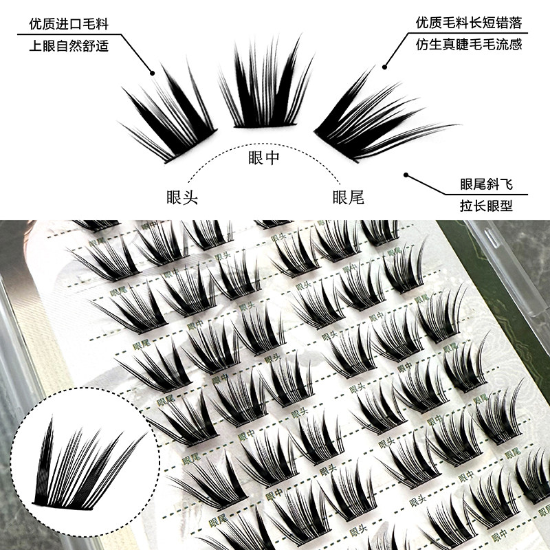 📚 免胶蛇系小信子狐系斜飞假睫毛自然仿真单簇嫁接感眼睫毛上镜新手