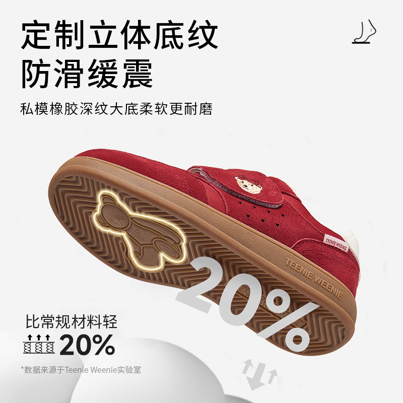 👀首先,这款鞋子的设计真的太有特色了!小熊的图案充满了童趣,穿上它就像带着一个小熊在脚底探险,非常可爱。鞋身采用红色作为主色调,给人一种新年喜庆的感觉。而且,德训板的设计更是让人眼前一亮,无论是运动还是日常穿搭,都能轻松应对。
