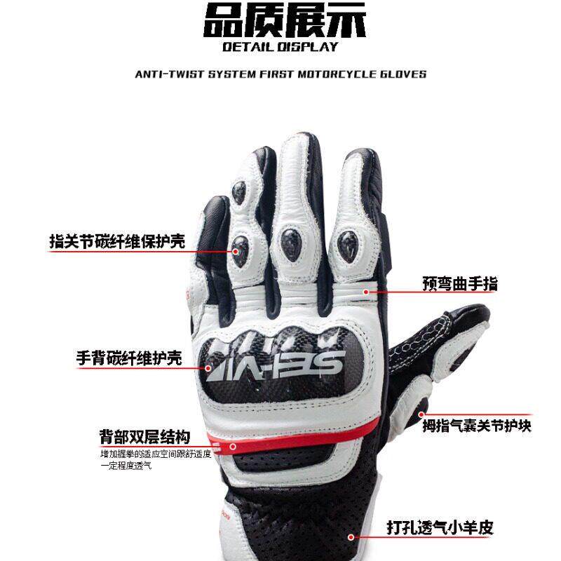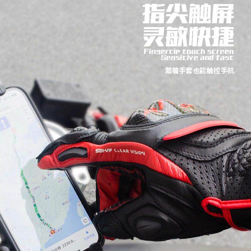 📚 SEI-VI赛威骑行机车手套夏季机车防摔碳纤真皮手套骑士装备男女