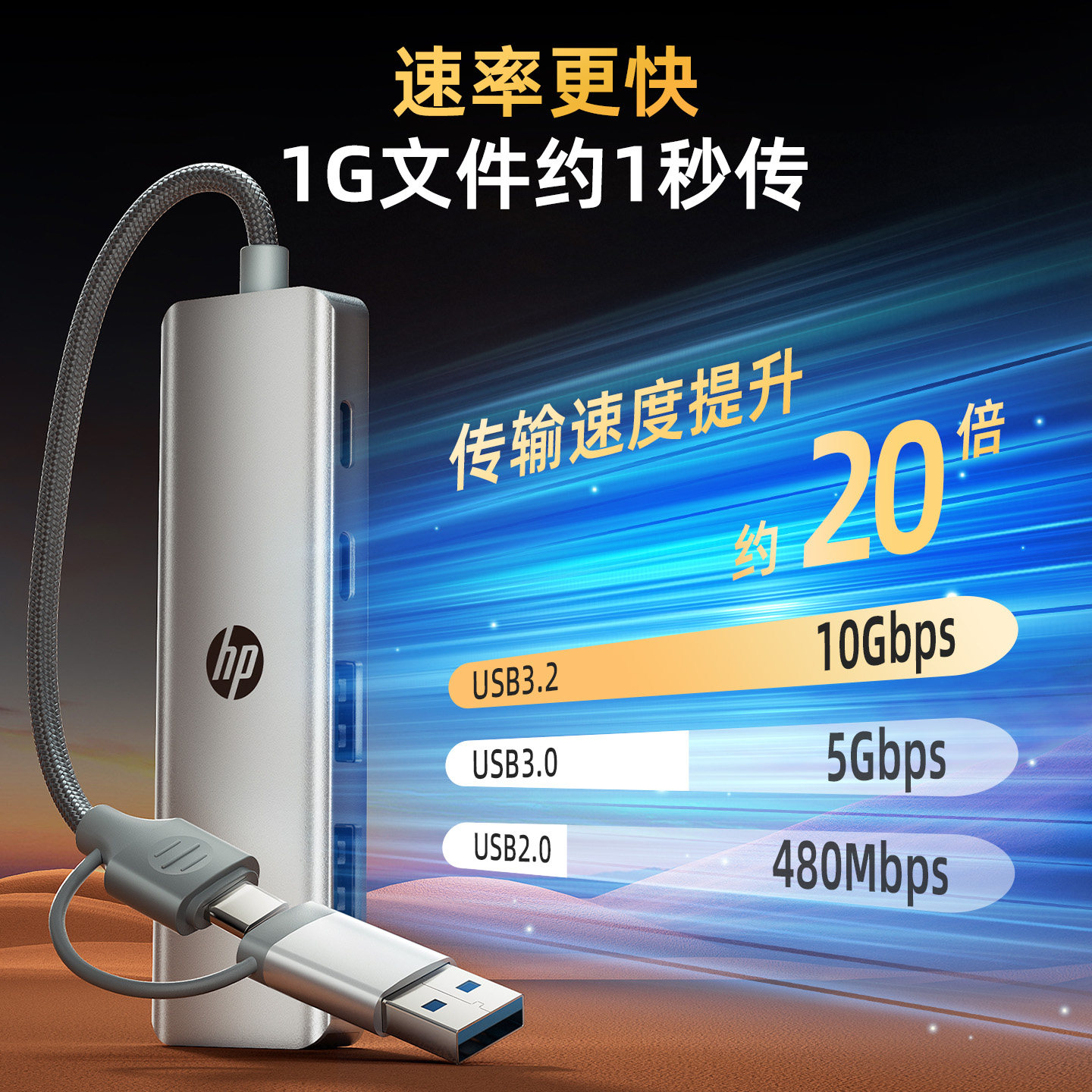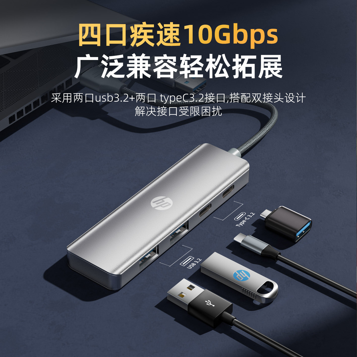 📚 惠普usb3.2拓展坞双接头分线器typec转多功能接口扩展适用苹果macbook笔记本台式电脑手机平板高速10Gbps传输