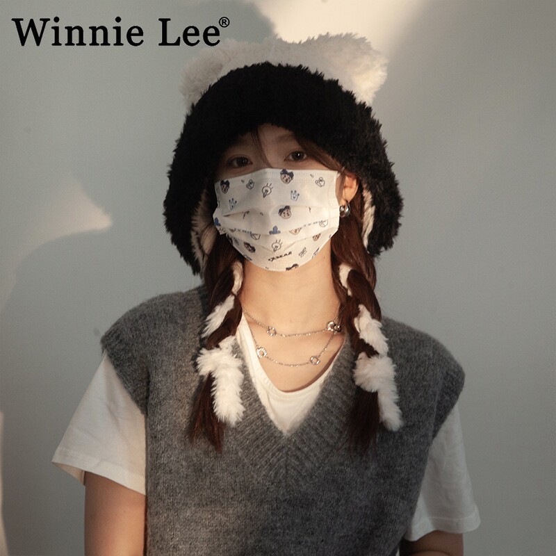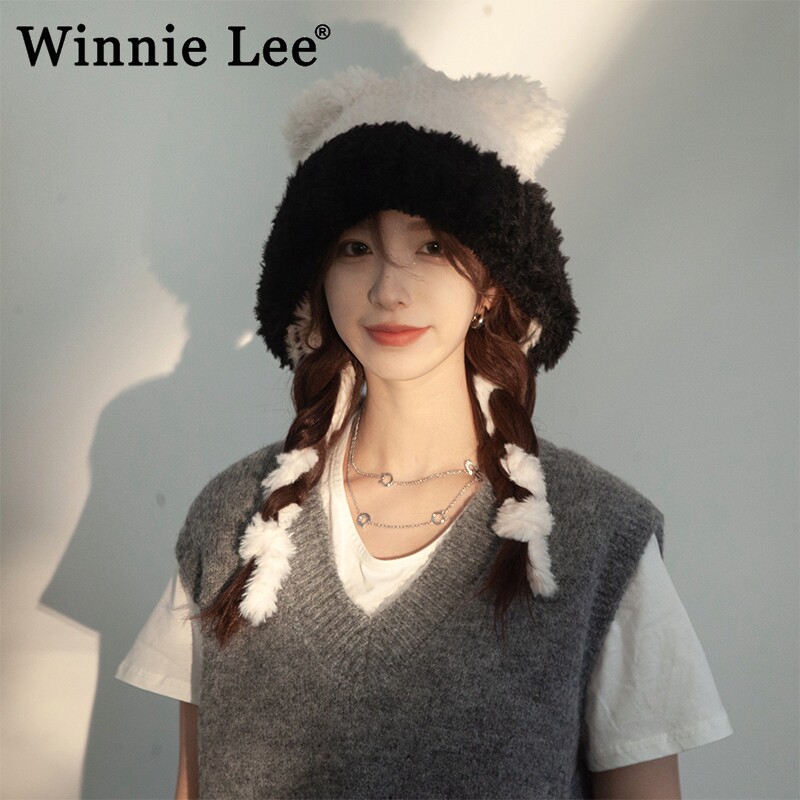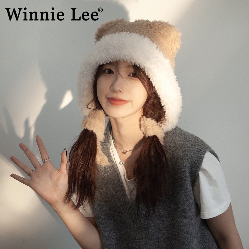 📚 Winnie Lee日本设计师联名款小熊耳朵帽子毛绒绒针织帽护耳毛线帽