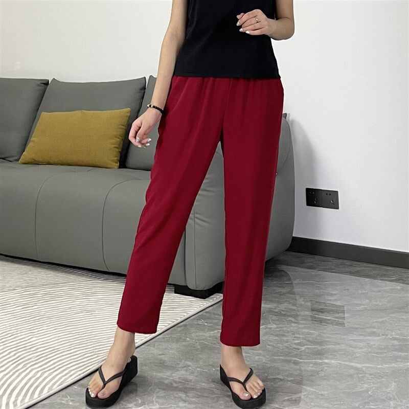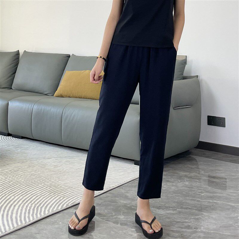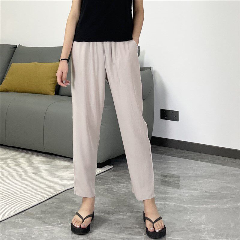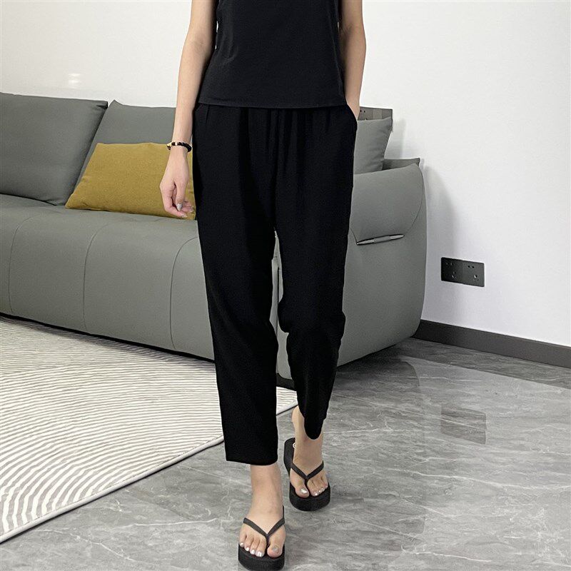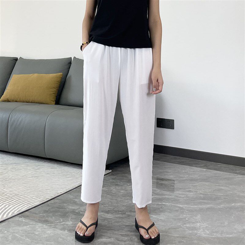 📚 棉绸纯色休闲裤女宽松大码胖mmA夏季薄款高腰显瘦人造棉睡裤哈伦