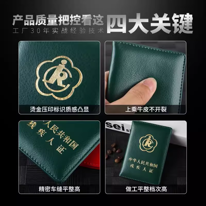 📚 真皮绿色二代残疾人证套外皮红色外壳残疾人证书保护套残疾人皮套