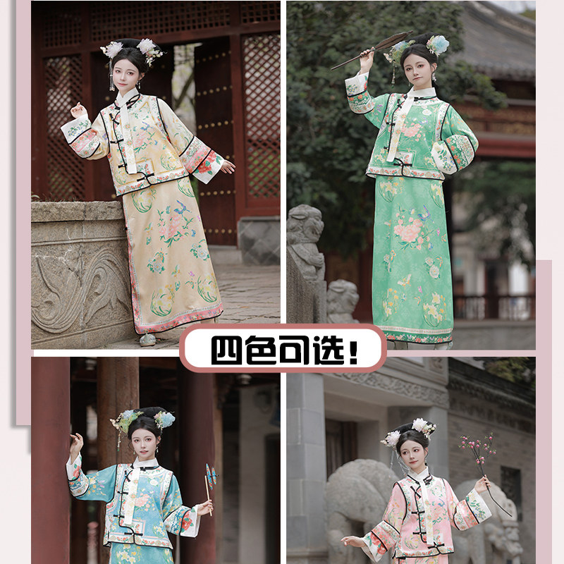 📚 原创【晚清】汉服女清代公主服装格格服印花古装马甲清朝旗装两件