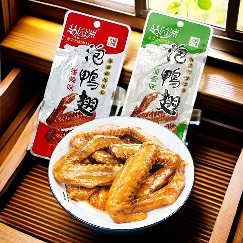📚 桔园洲泡鸭翅香辣鸭翅根零食休闲麻辣食品卤鸭翅膀熟食开袋即小吃