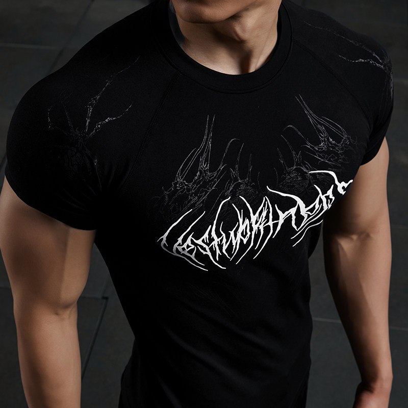 📚 Vest Up暗黑毒液健身衣无缝显大修身圆领运动服运动休闲短袖男