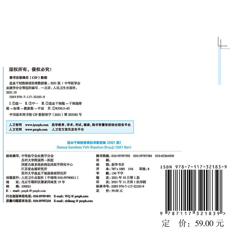 📚 正版 造血干细胞移植标准数据集(2021版)人民卫生出版社 中华医学会血液学分会,苏州大学附属**医院等