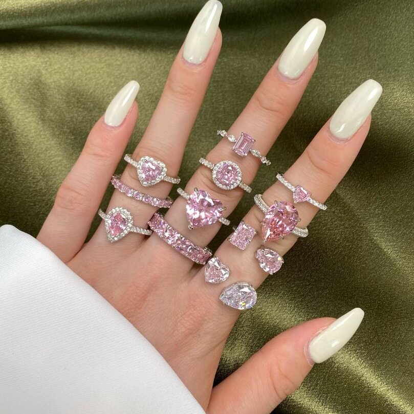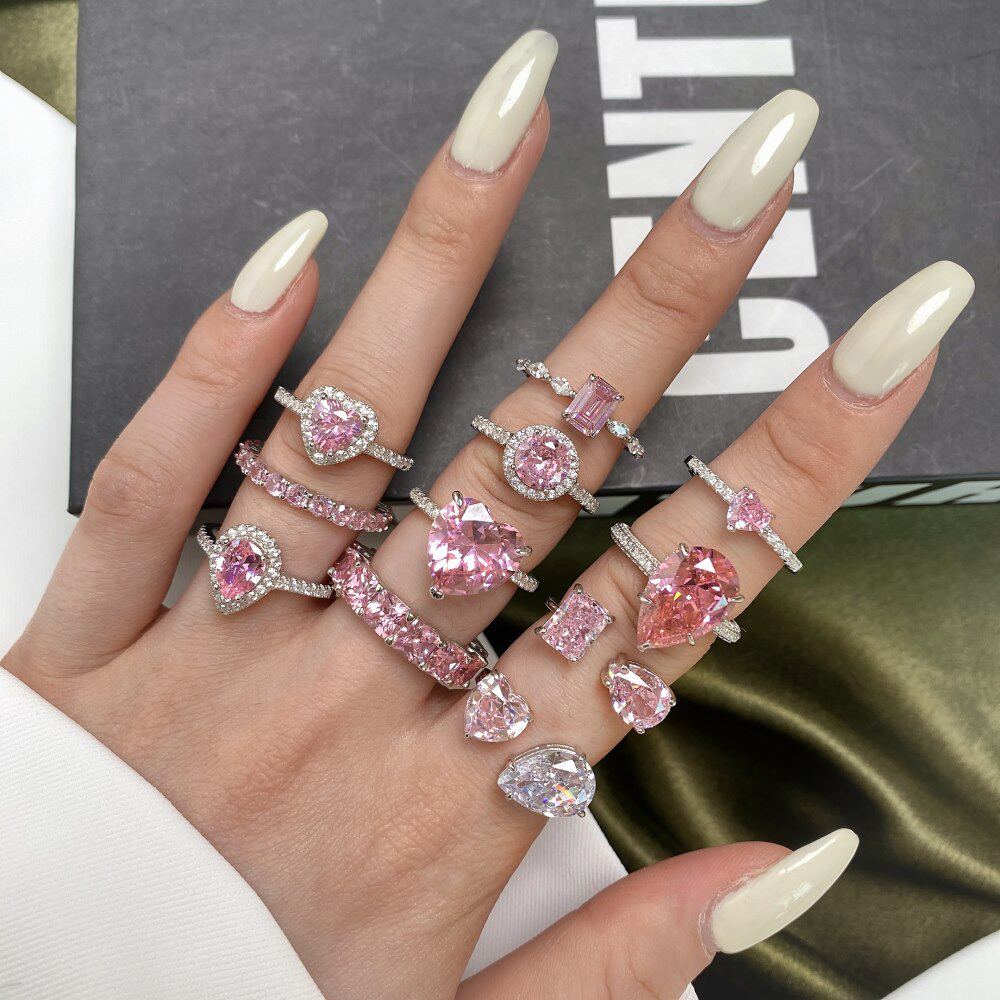 📚 英国coopkoops925银戒指镶嵌粉色水滴爱心锆石戒指排粉指女
