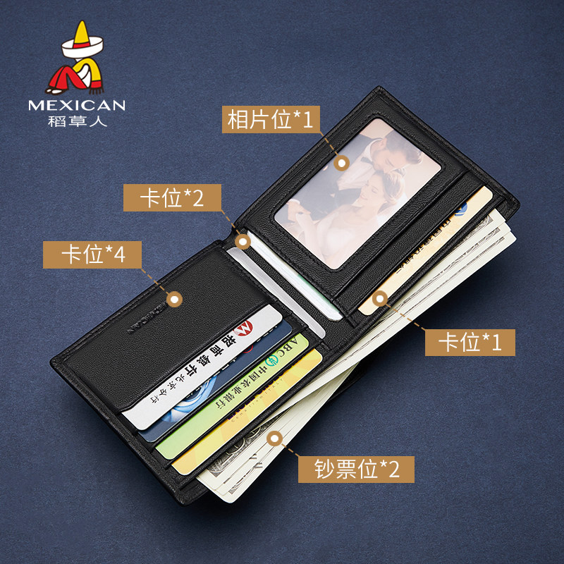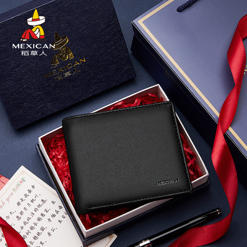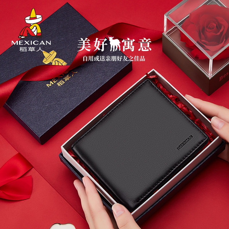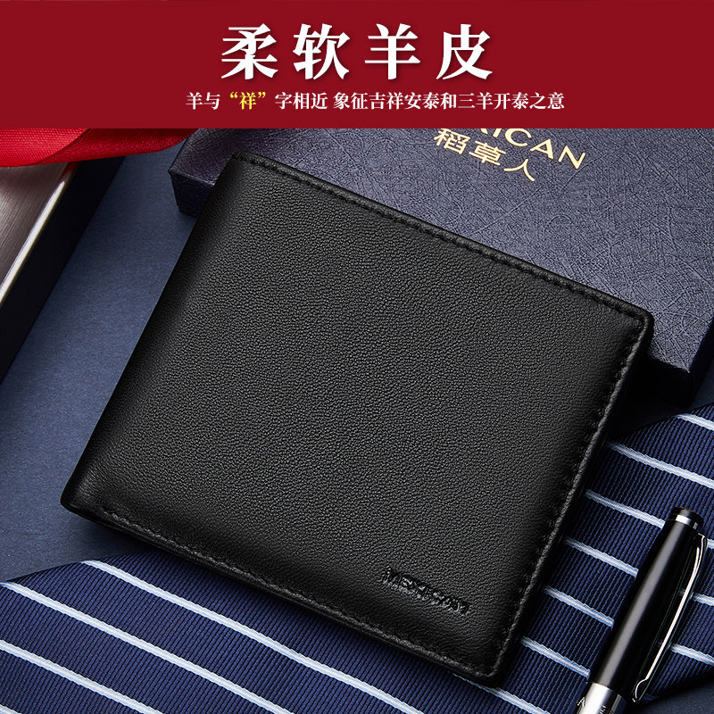 📚 稻草人羊皮钱包男款2024新款真皮短款钱夹简约时尚正品高档送爸爸