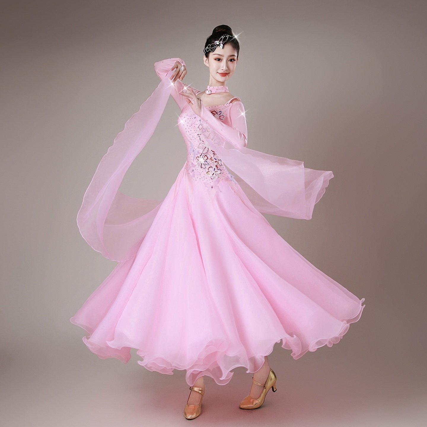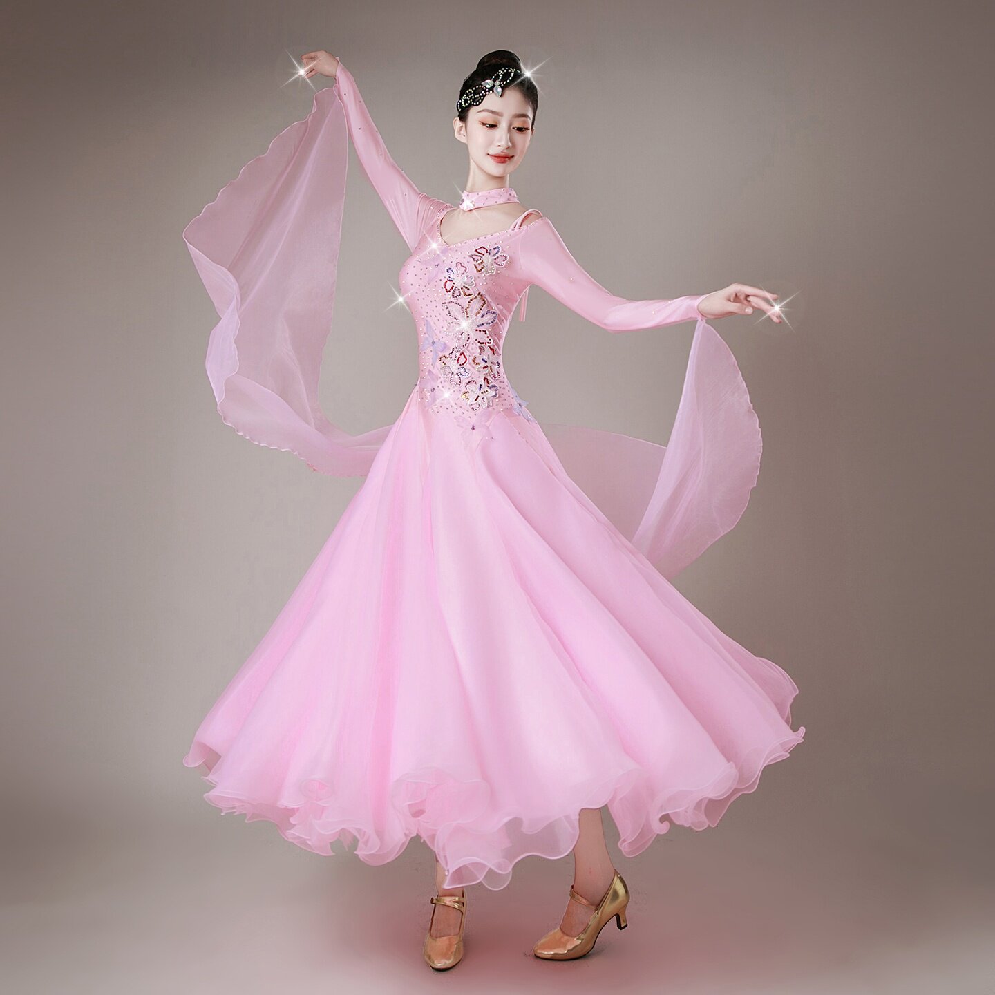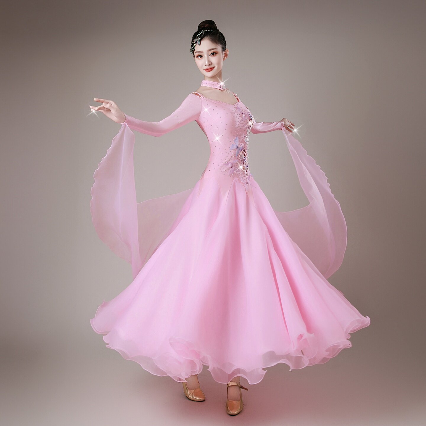 📚 新款粉色蝴蝶摩登舞国标舞连衣裙华尔兹狐步比赛服交谊舞演出服