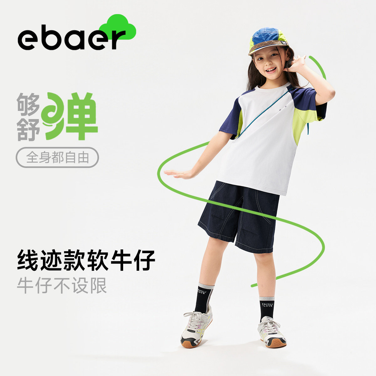 📚 【夏上新】EBAER儿童牛仔中裤2026夏季新款男女童防褪色五分裤子