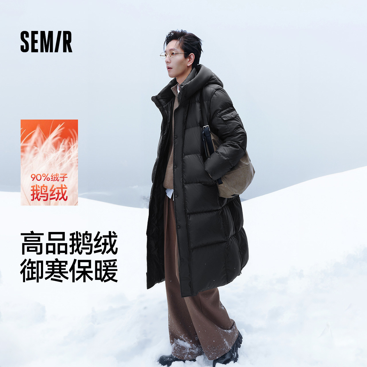 📚 森马羽绒服男冬装90绒子鹅绒服加厚防泼水抗静电长款连帽外套户外