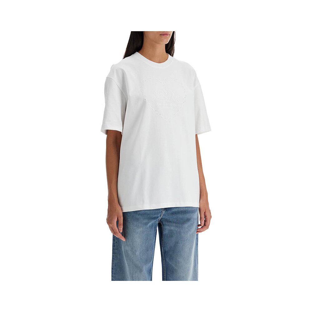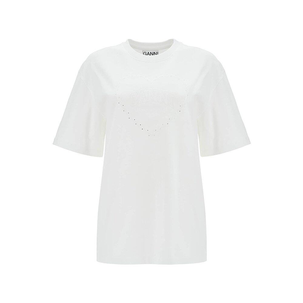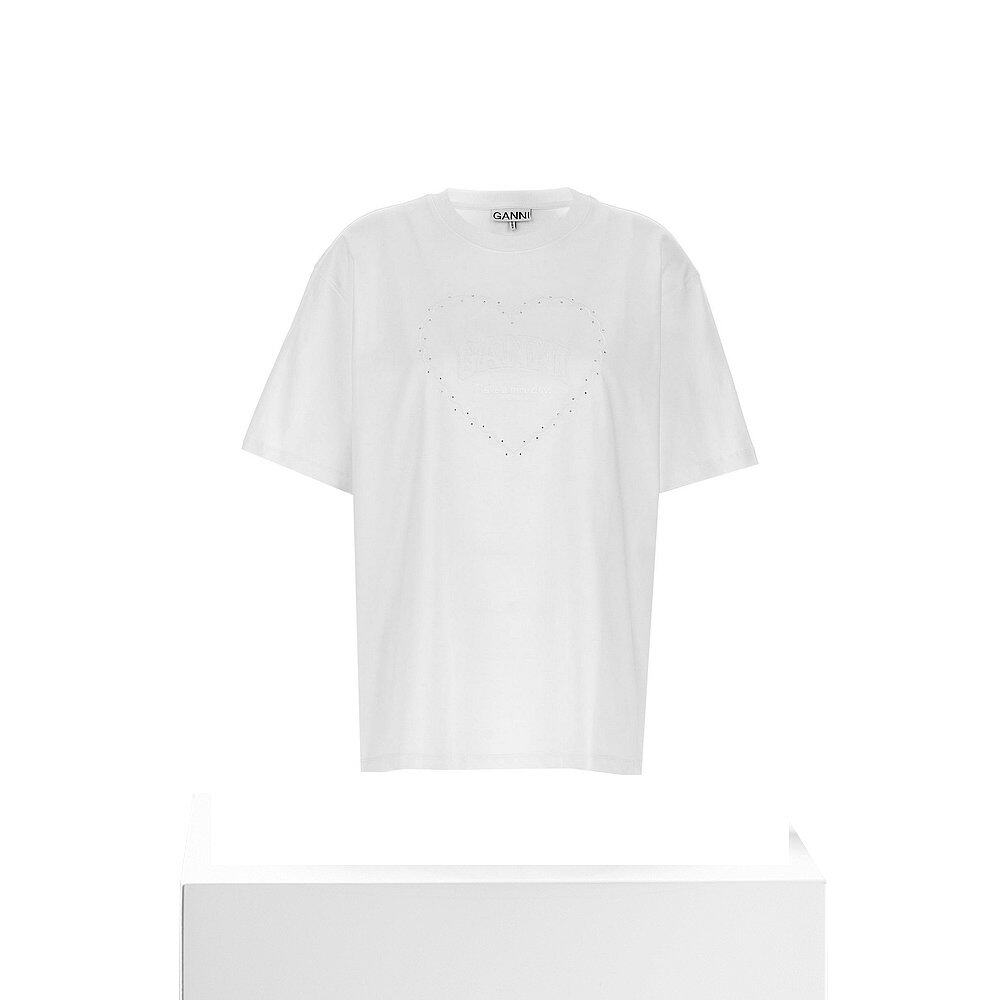 📚 香港直邮GANNI 女士T恤 T4033151 AW2024 白色 Rhinestone Logo E