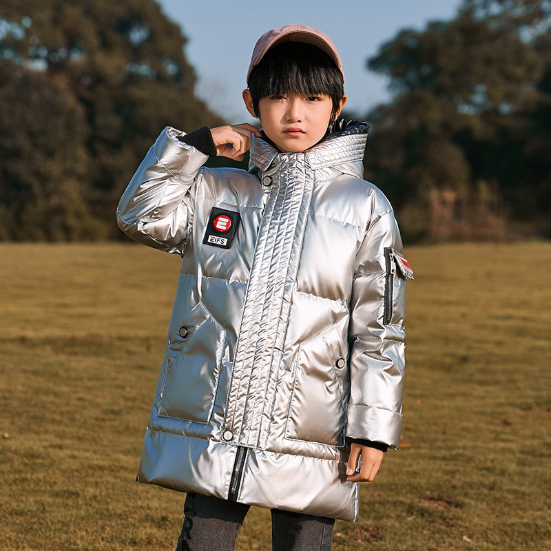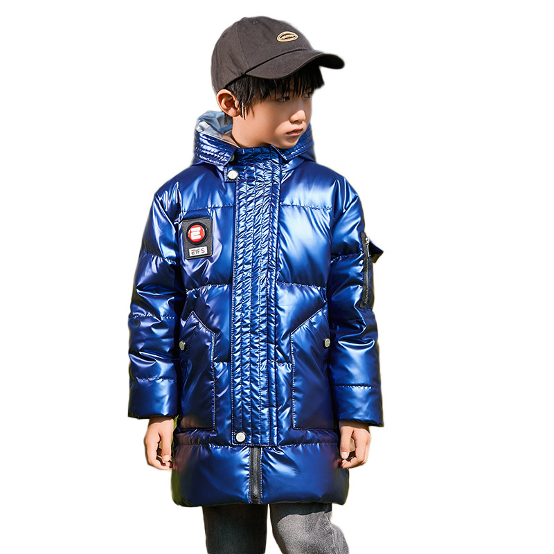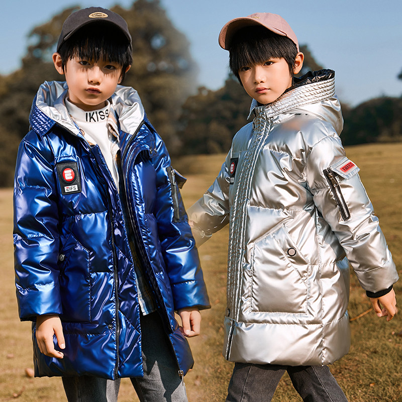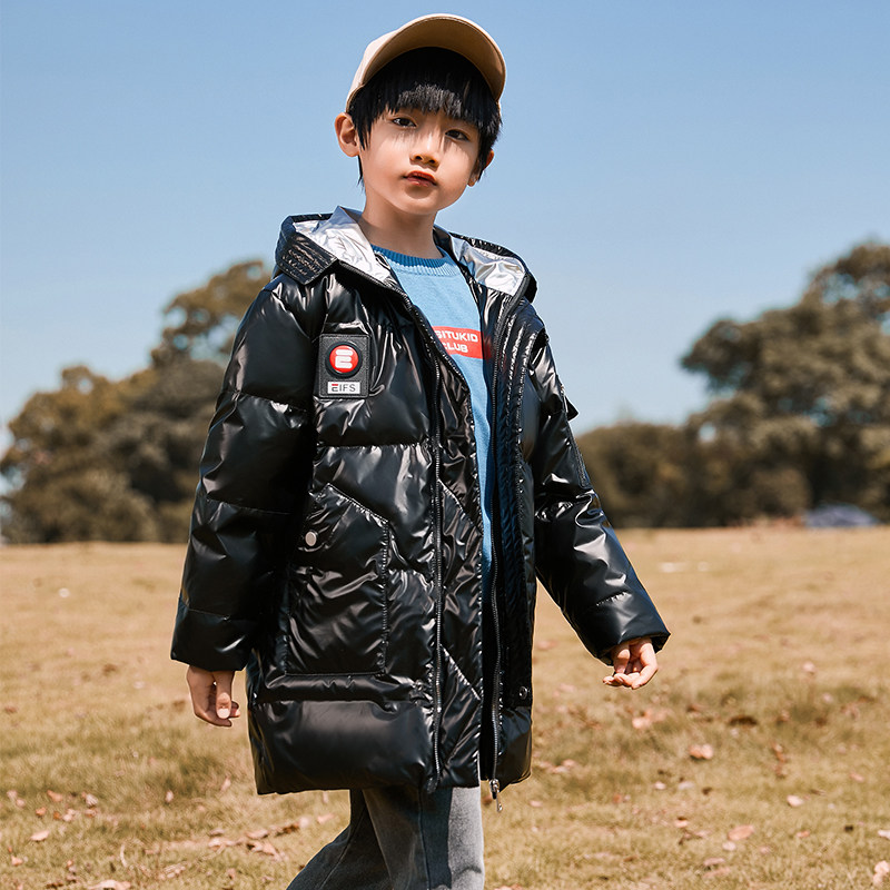 📚 男童女童中长款免洗羽绒服加厚宝蓝白黑色外套大童连帽棉袄衣服冬
