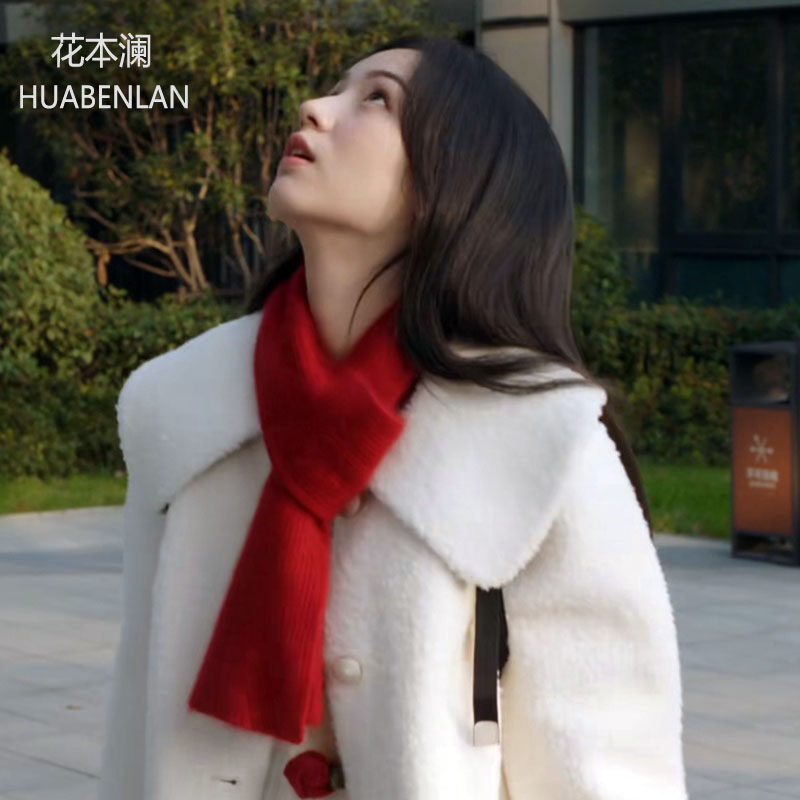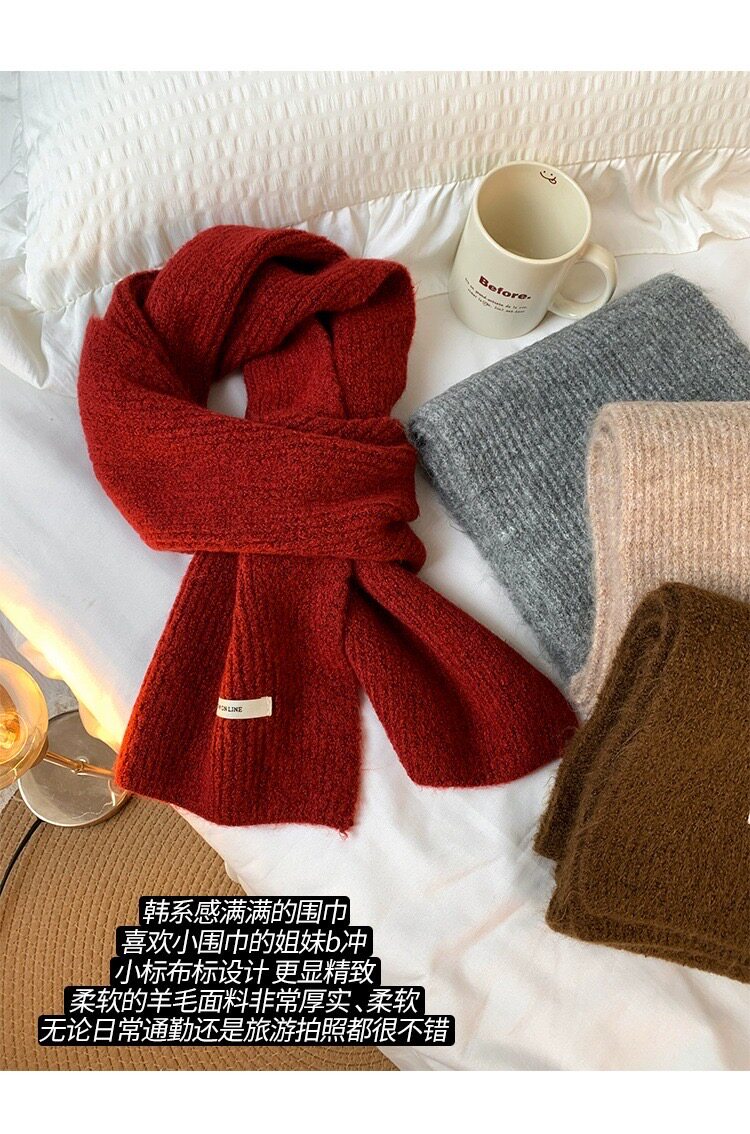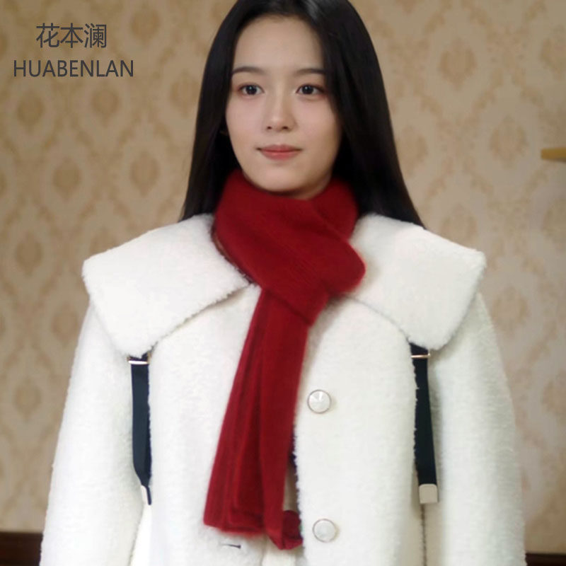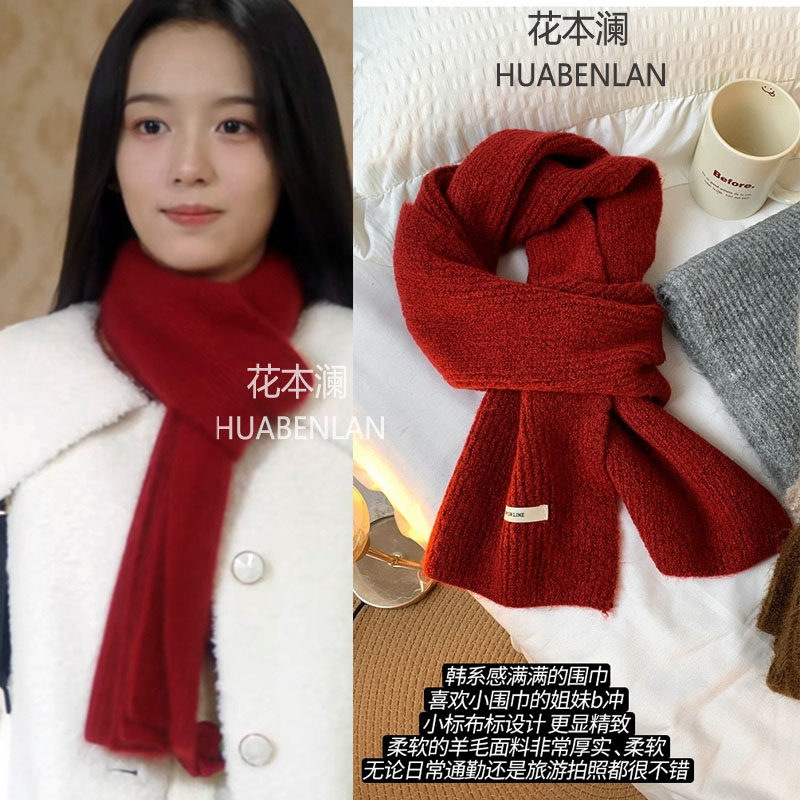 📚 顾声周也同款围巾酒红色针织毛线秋冬美拉德色系围脖女