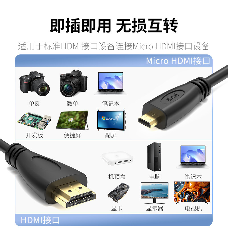📚 高清micro hdmi转HDMI连接线直播单反相机微型视频电视电脑连接线